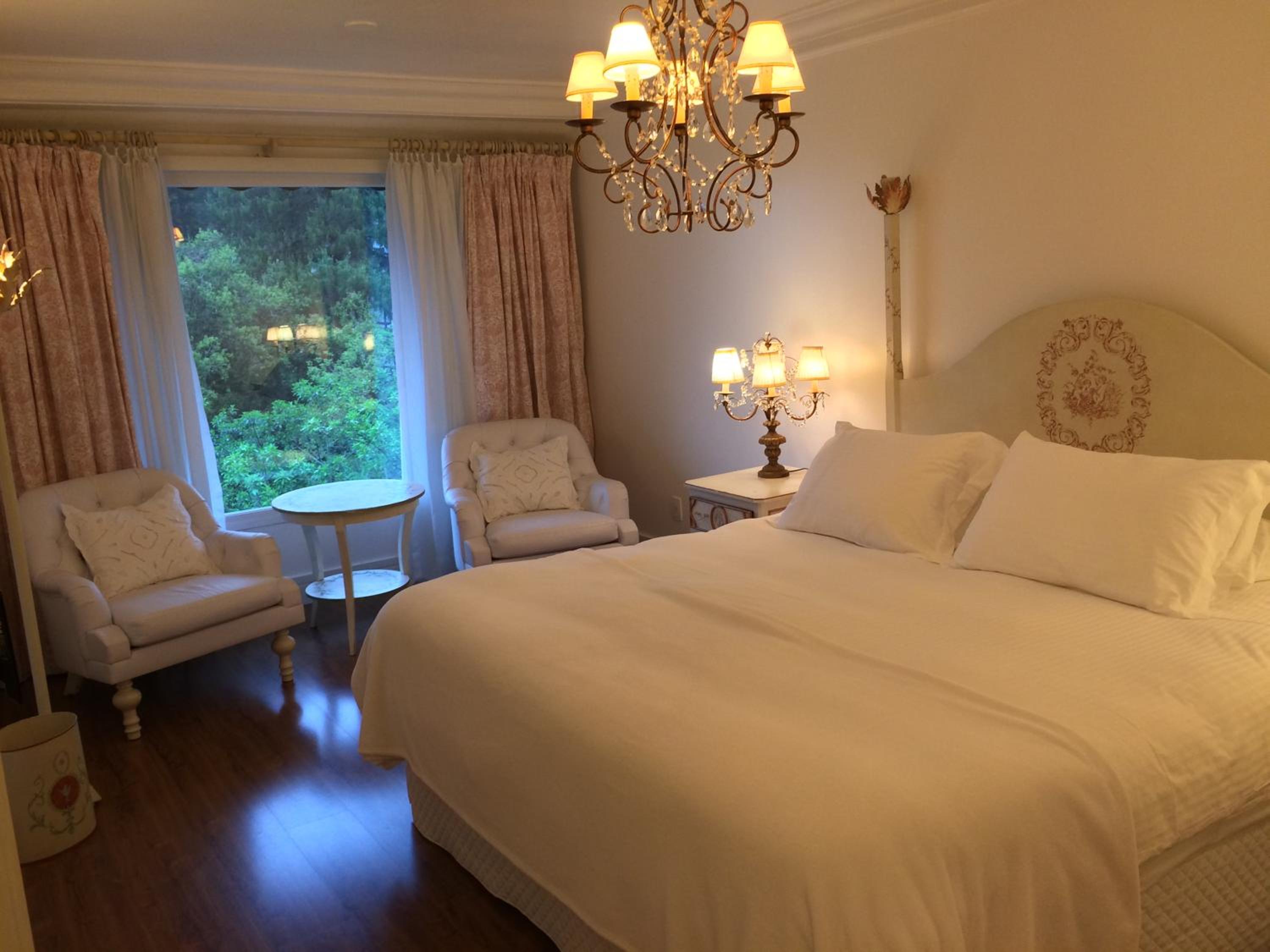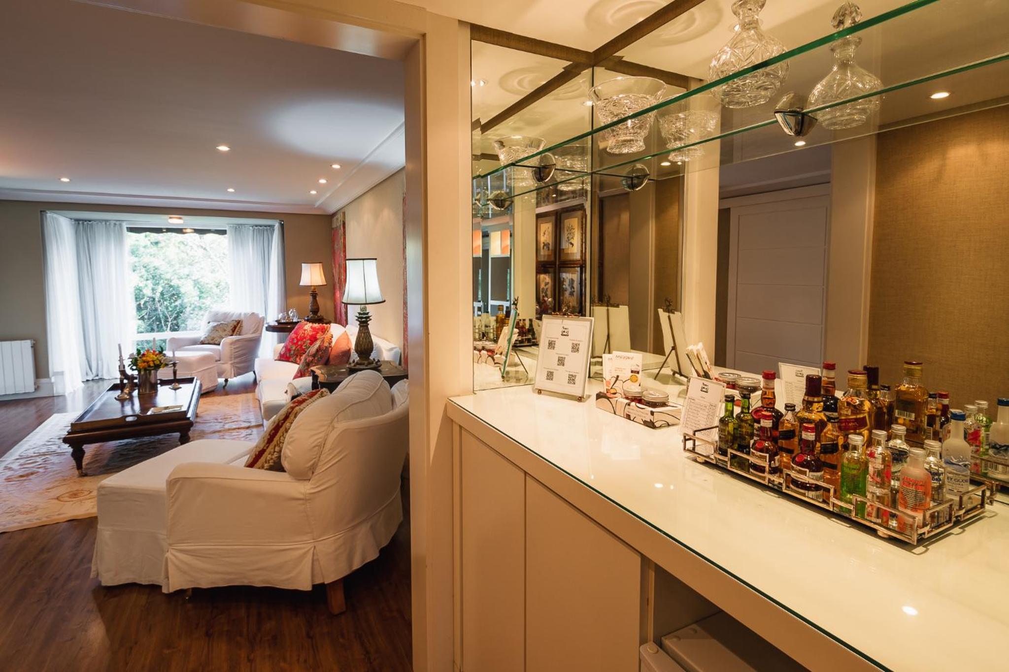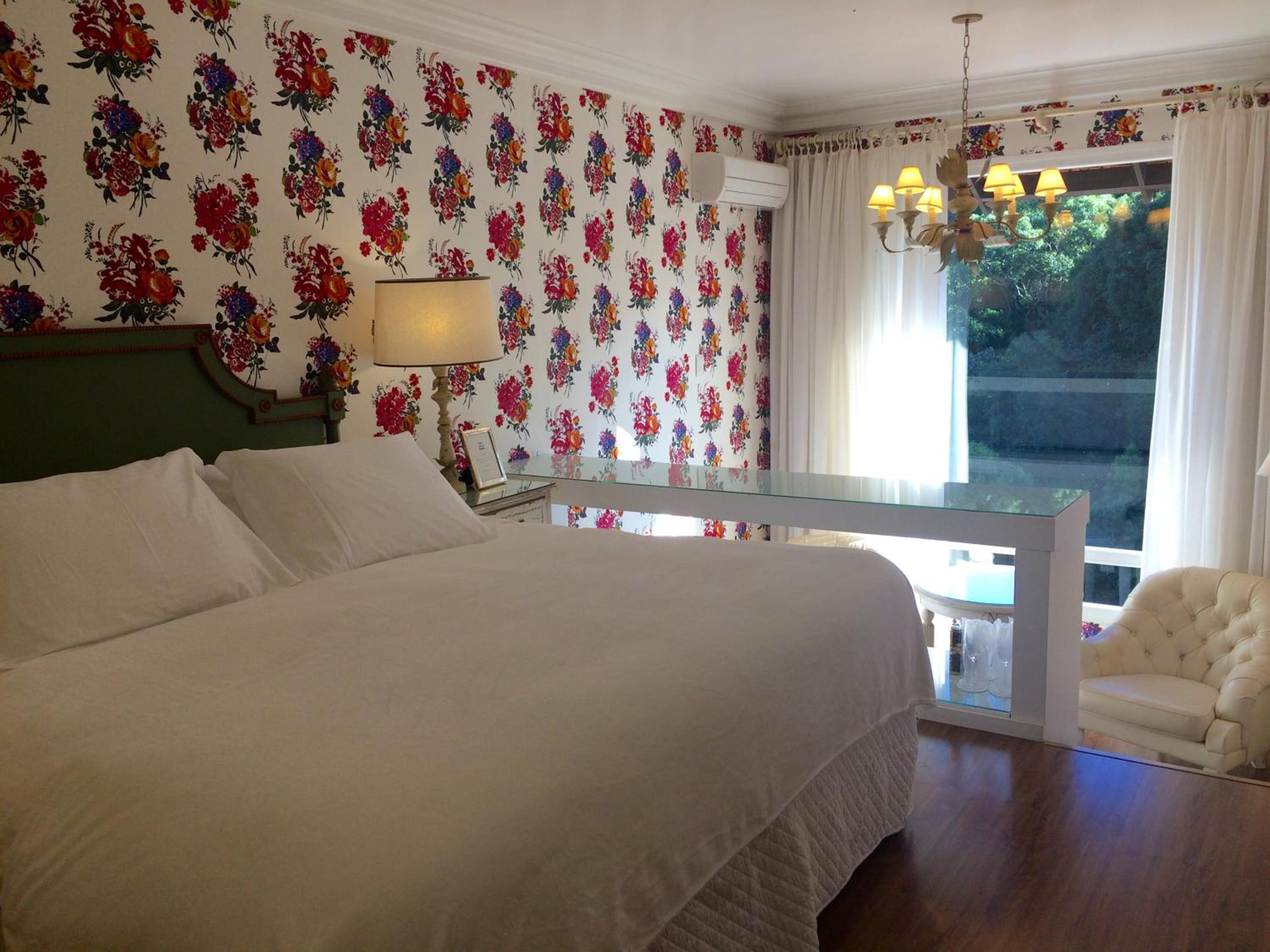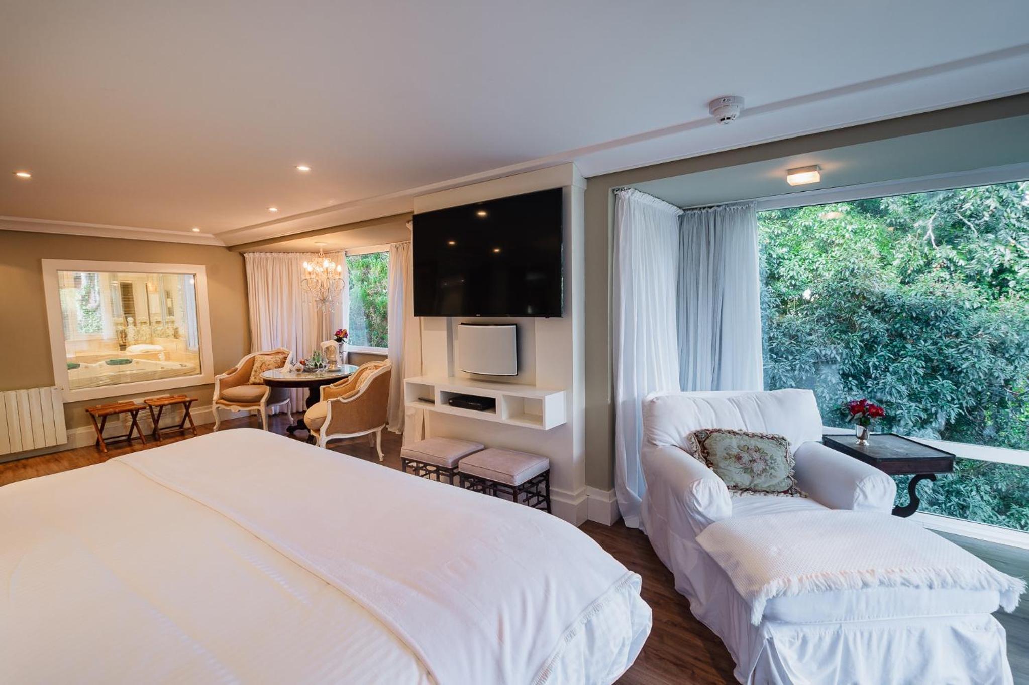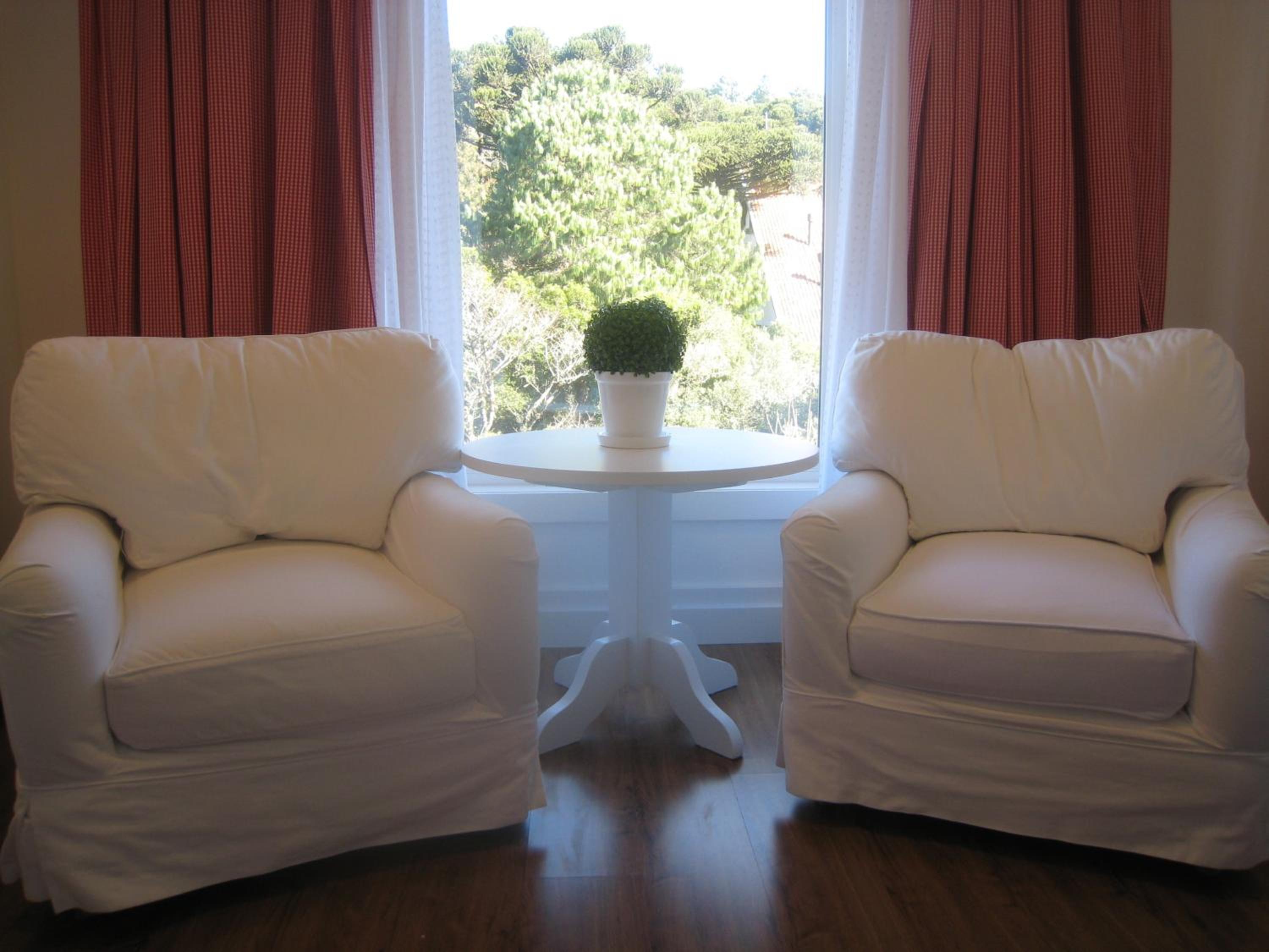 Experience the charm of classical wooden floors and intricate white fabrics in our welcoming suites at Estalagem St. Hubertus. Each suite offers modern amenities such as air conditioning, LCD TV, and breathtaking views of the green hills.