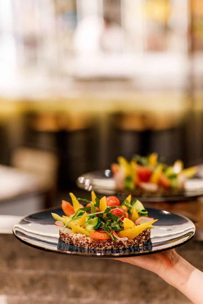 Savor exquisite dining at our on-site restaurant or indulge in room service during limited hours. Enjoy a delightful continental breakfast each morning to kickstart your day, and unwind with a drink at our elegant bar/lounge.