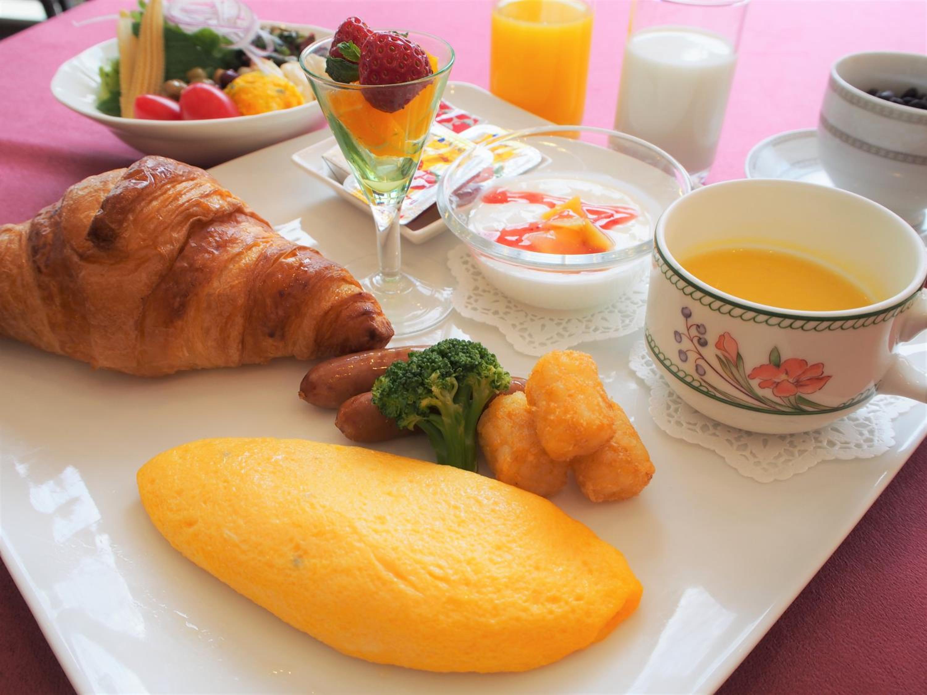 朝食が定食タイプで和洋を選ぶスタイル。