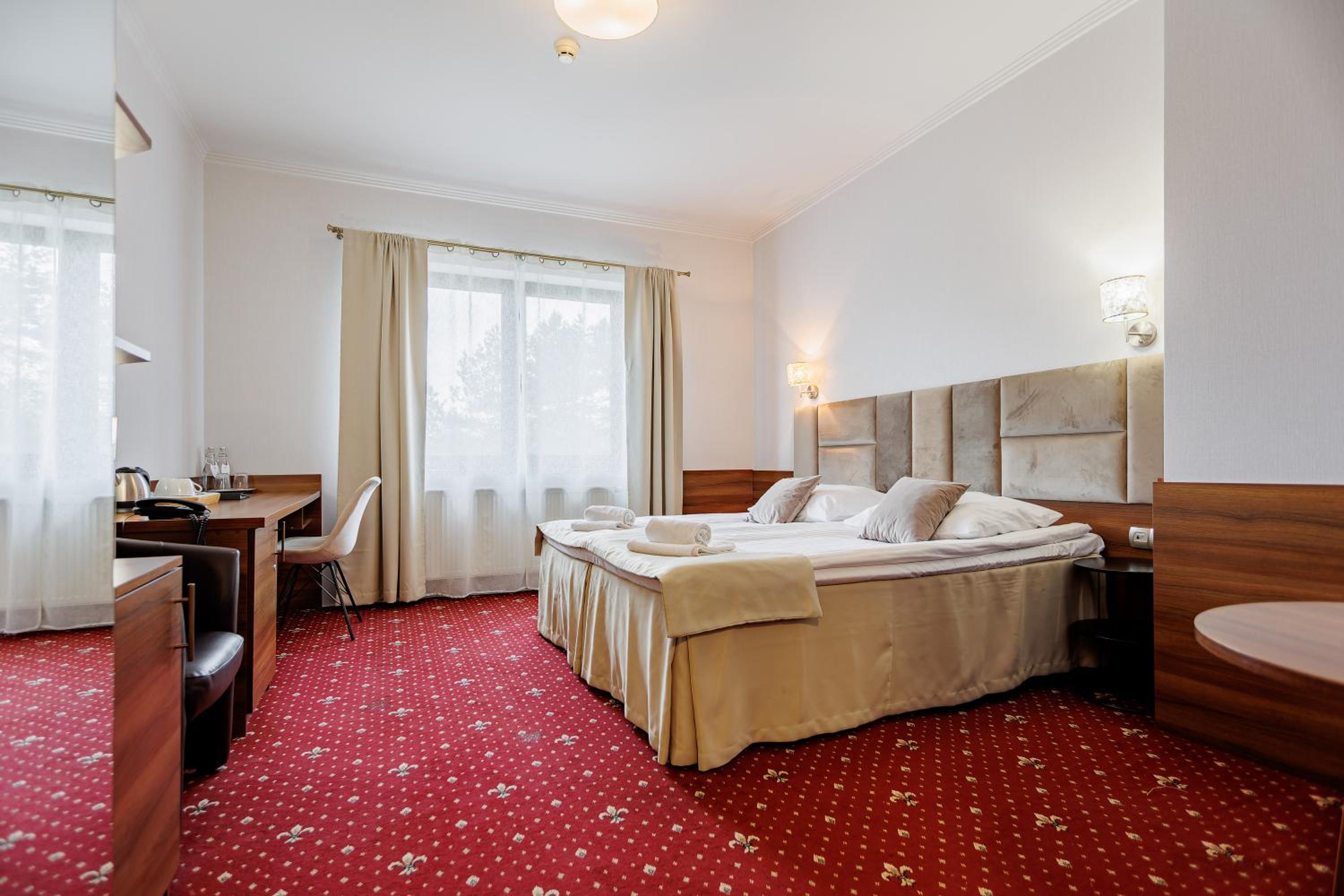 Hotel Cristal Park in Dąbrowa Tarnowska offers air-conditioned rooms with flat-screen TVs and free internet, providing a comfortable stay for guests. The classic design and essential amenities like a work desk ensure a relaxing experience.