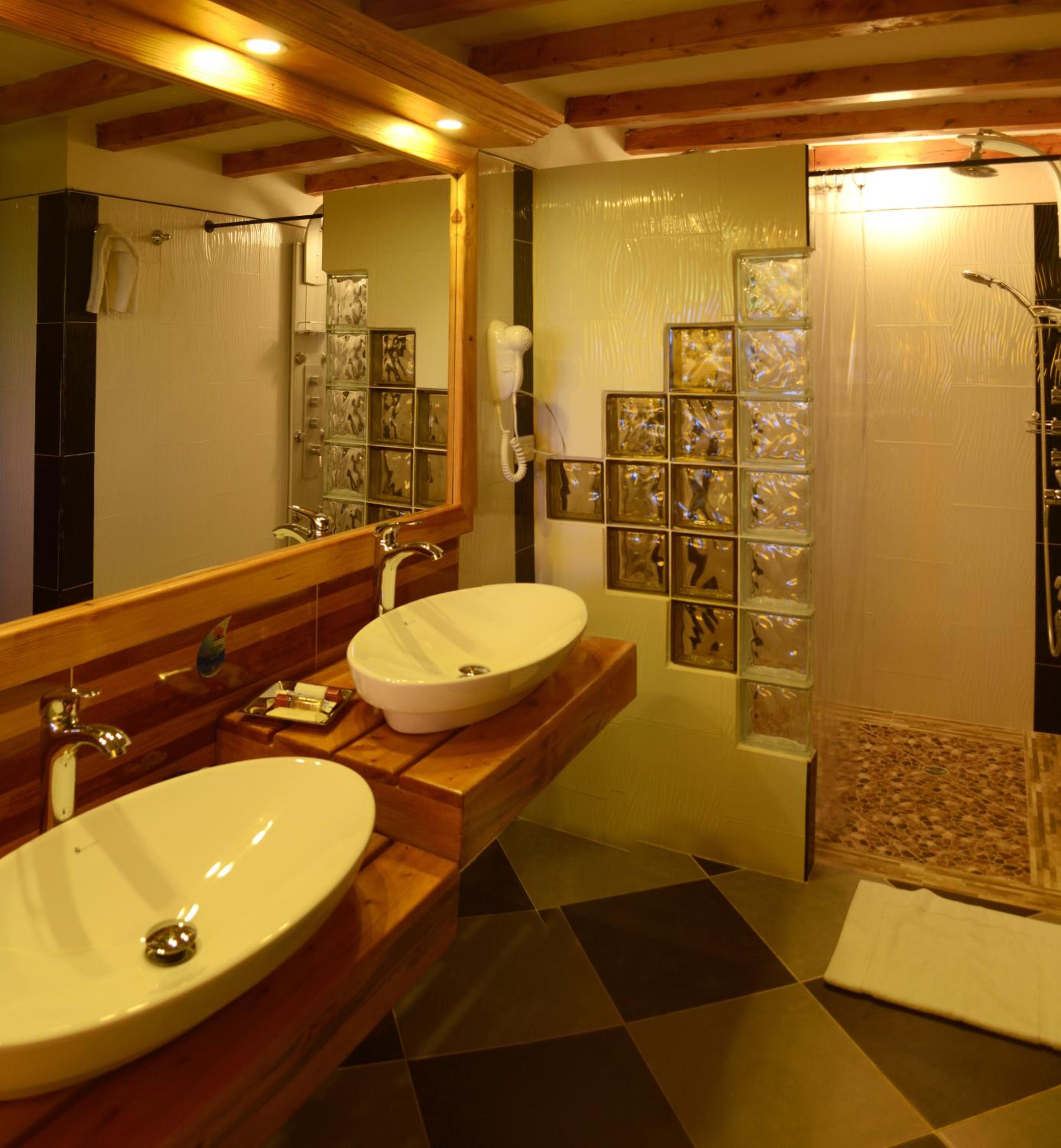 Lo espacioso de las instalaciones, la arquitectura, la decoración de las habitaciones, los paisajes circundantes, el sauna y la piscina.