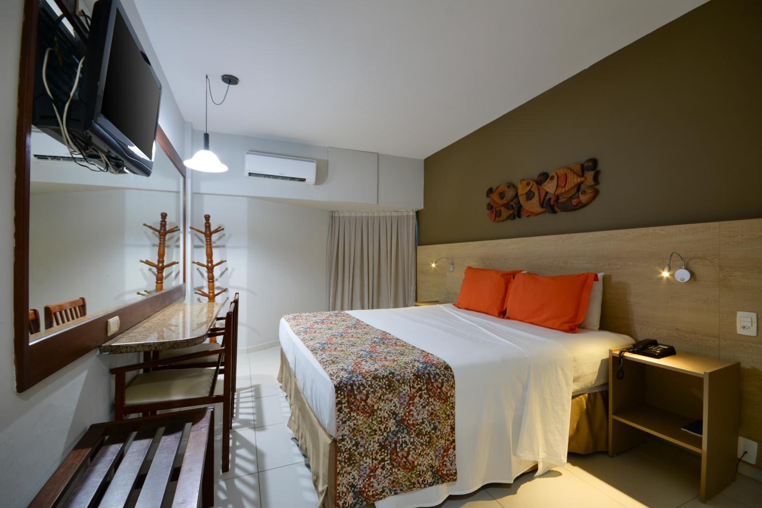 A localização do hotel é muito boa, fica perto de muitos bares e restaurantes bons, bem como de frente para praia com uma orla maravilhosa. A limpeza é boa e o café da manhã muito bom. No café da manhã tem tudo que precisamos, pães, bolos, frios, sucos, chás, cafés, proteínas (acho que 4 tipos) e tapioca feita na hora.