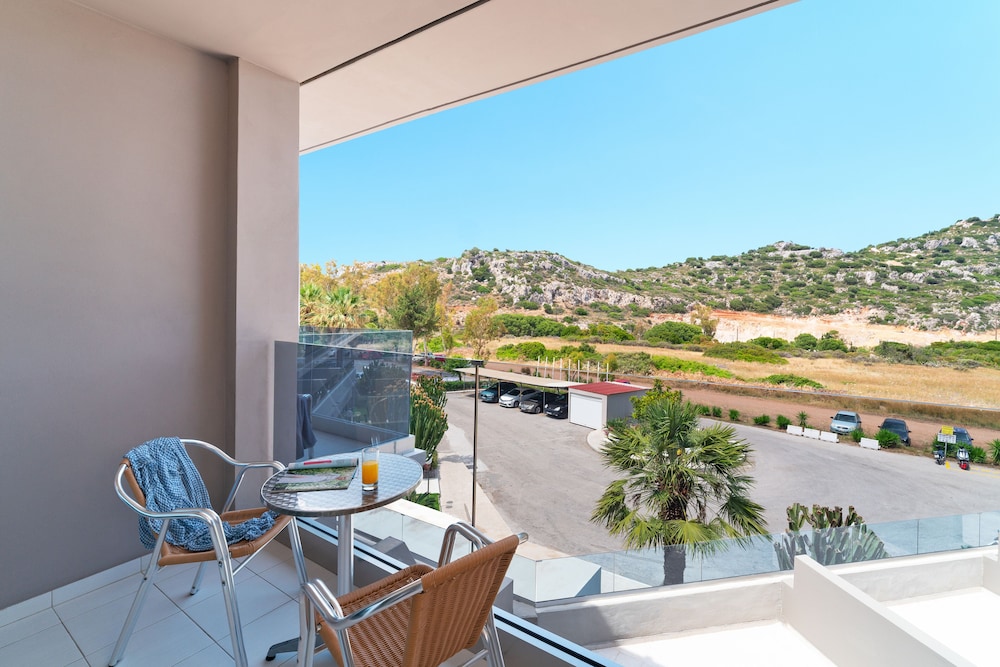 Pros: very friendly and helpful lady at the front desk, close to Anthony Quinn and Ladikio beaches, easy parking, many (basic) facilities, nice pool, superior room is good size and nice view to the pool and sea. Quiet for a good night’s sleep.