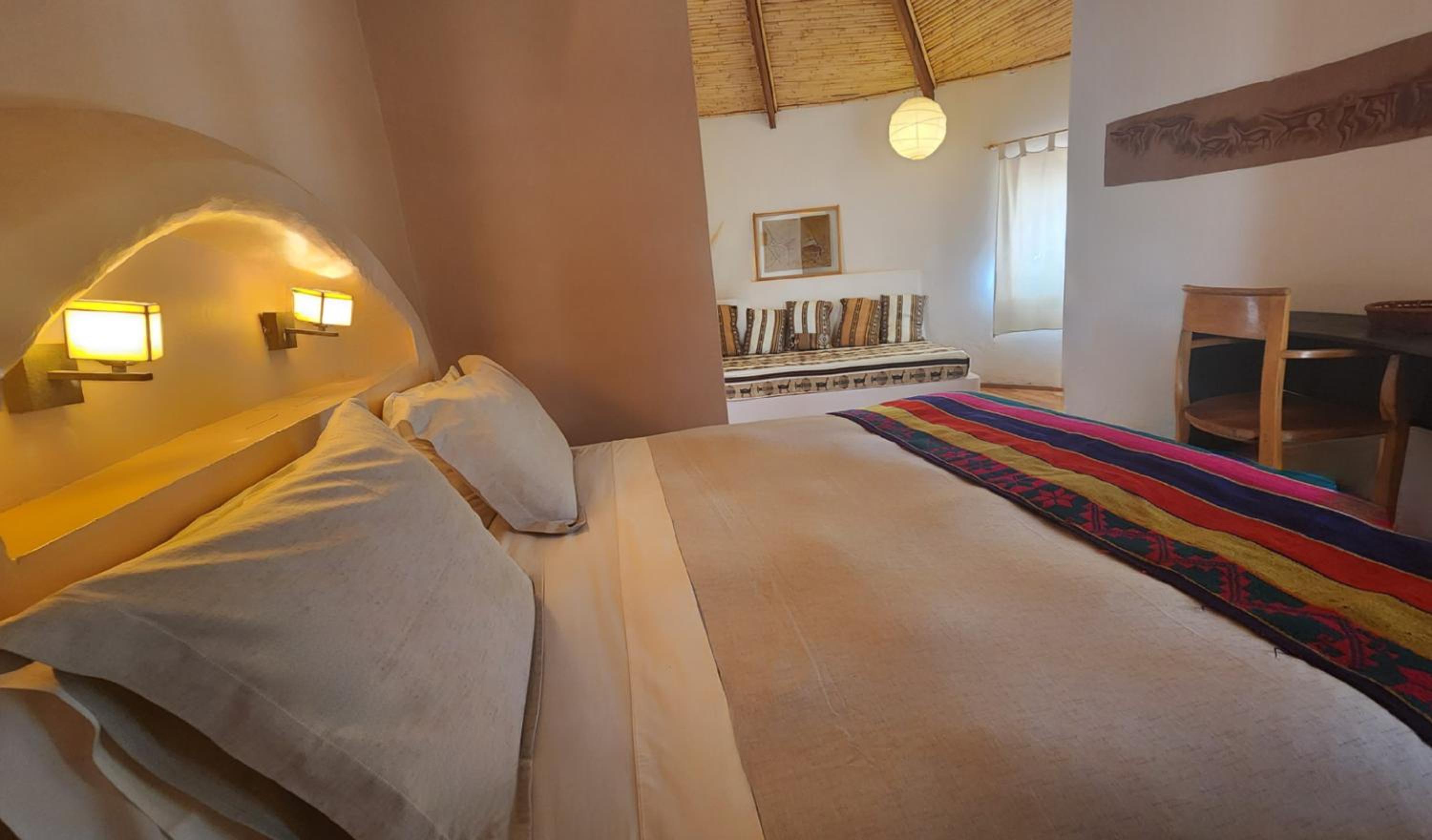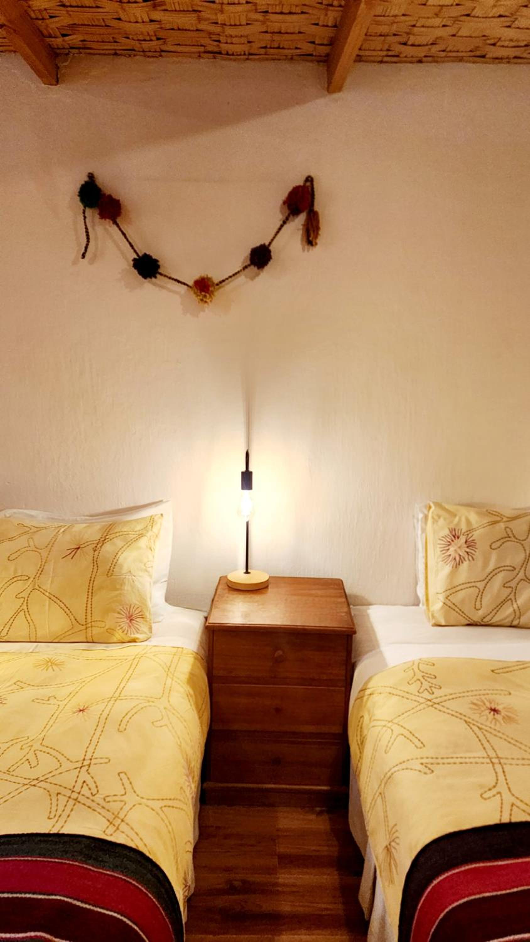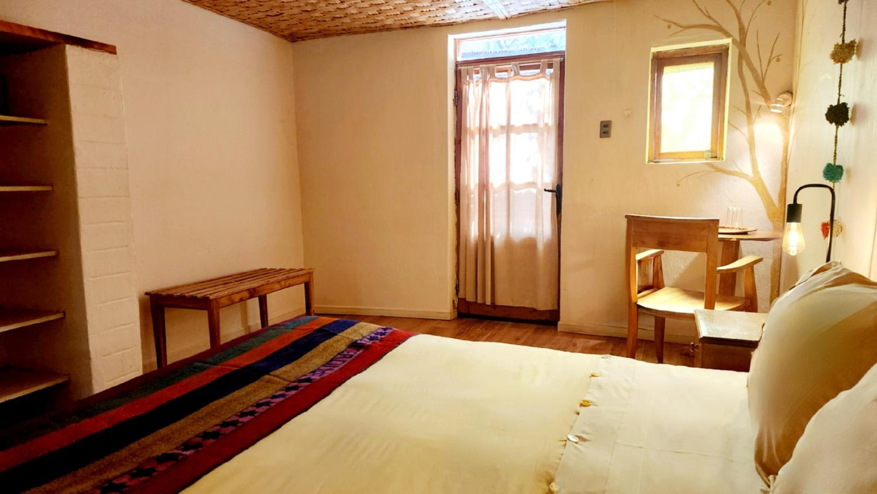 Guests at Tulor enjoy rustic-style rooms made of adobe, wood, and stone, each featuring a private bathroom, heating, and a safe. The natural building materials ensure a cool ambiance throughout the day, eliminating the need for air conditioning.