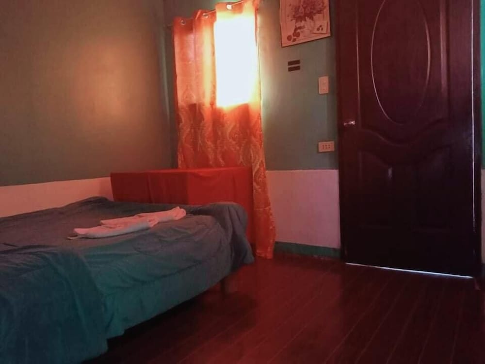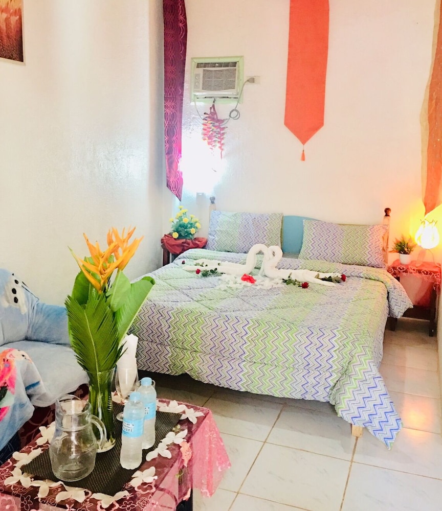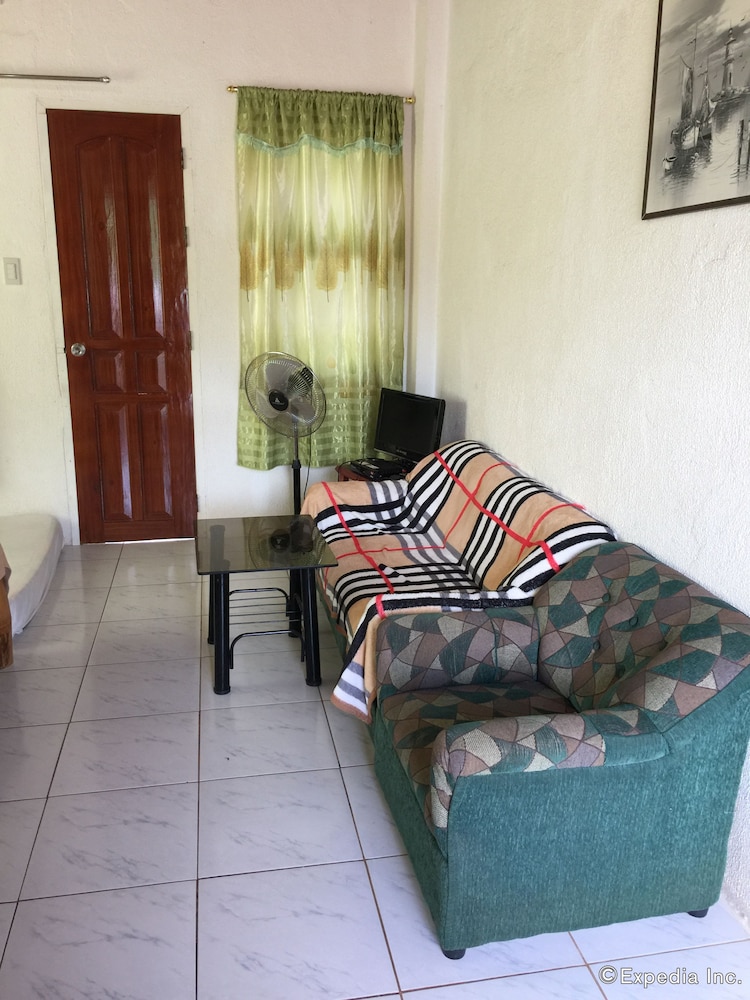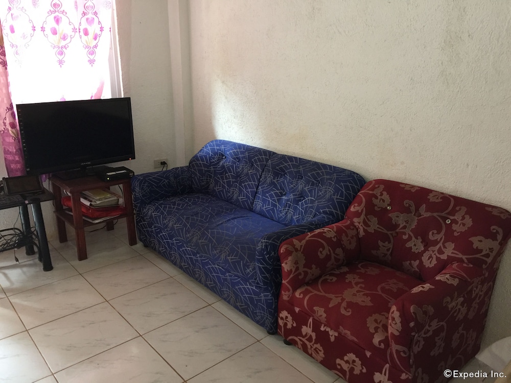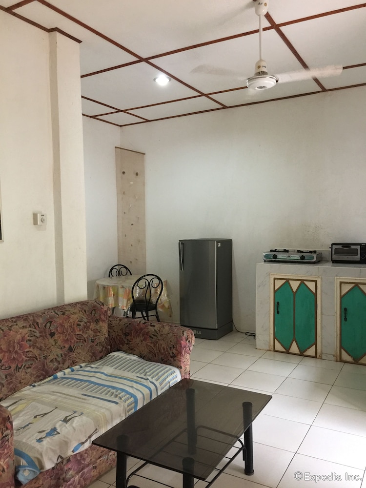 This is a budget priced hotel and it is a good value for the money. The place is a bit secluded, no real sign, just a narrow but very short dirt track but easily passable even in the rain. Not a sign out front that is visible from the road but the Google maps had it located very well. The rooms are a bit old, things are worn but in decent repair for the most part. The things that matter are okay, hot shower, plenty of water, a working satellite TV, a full kitchen with hot plate, fridge, sink, and plenty of dishes and cookware for five to eight people. There were three double beds, two in a closed bedroom with air con, one out in the main room. Two worn but covered arm chairs and a small sofa. The main area/beaches are maybe one to two kilometers away along with hardware stores, fast food places, and restaurants. A bit of a walk to the beach but you can park down at the Tourist Police parking lot for 100 pesos and it is an easy walk down past McDonalds to the beach. Parking for the beach is 100 pesos but you can redeem the ticket at a local gas station about 100 meters West of the parking lot, so if you need fuel you get that money back. All in all this is a great place for a budget visit to the area. Maybe five to eight minutes to the airport, maybe fifteen minutes to the big grocery stores in Tagbiliran.