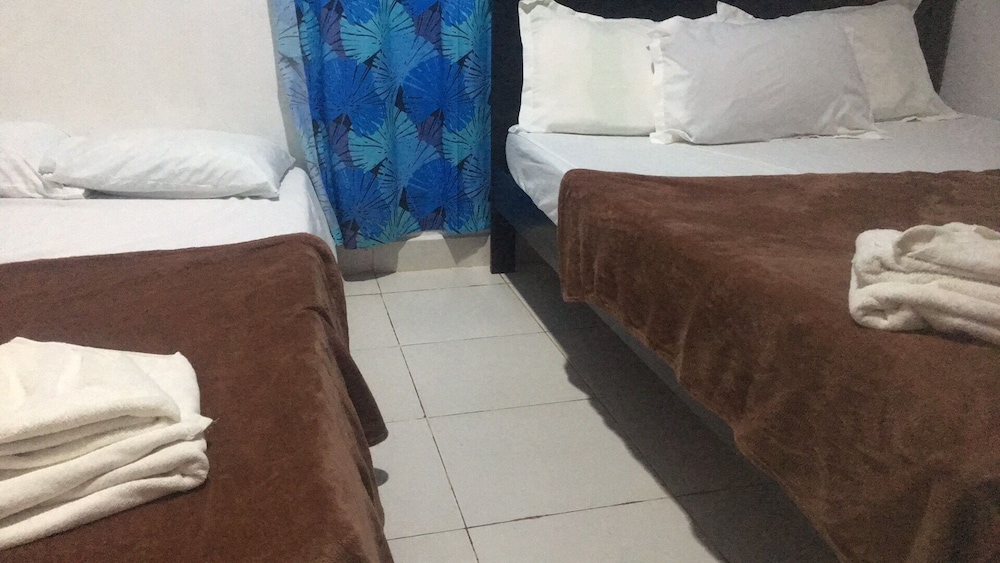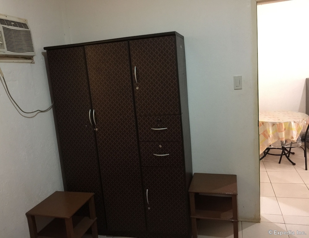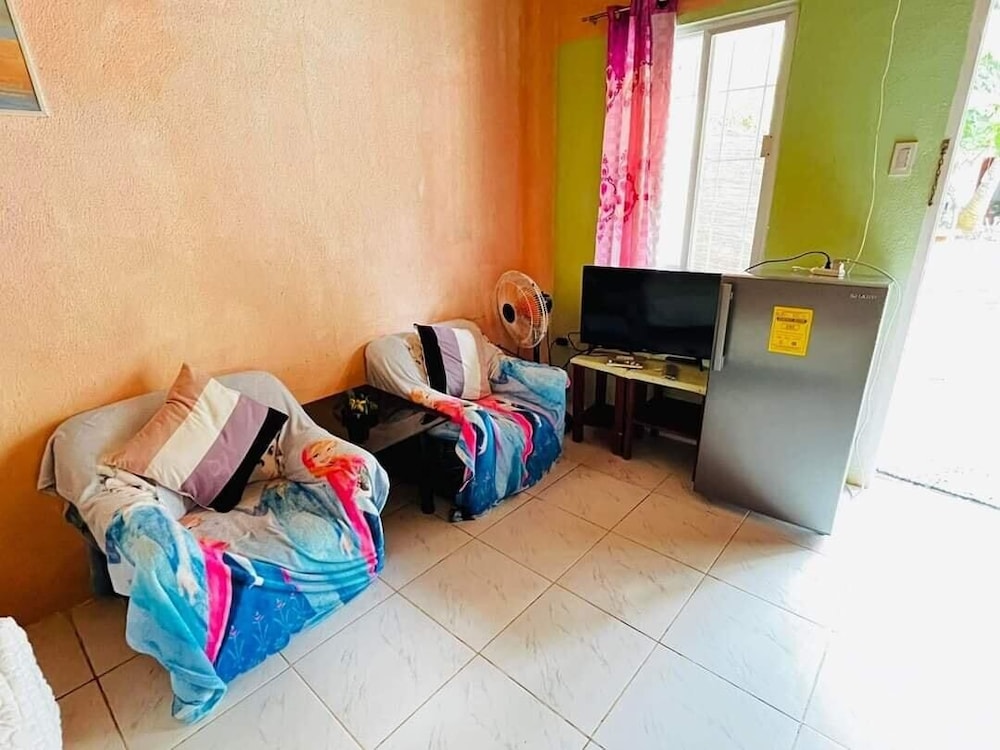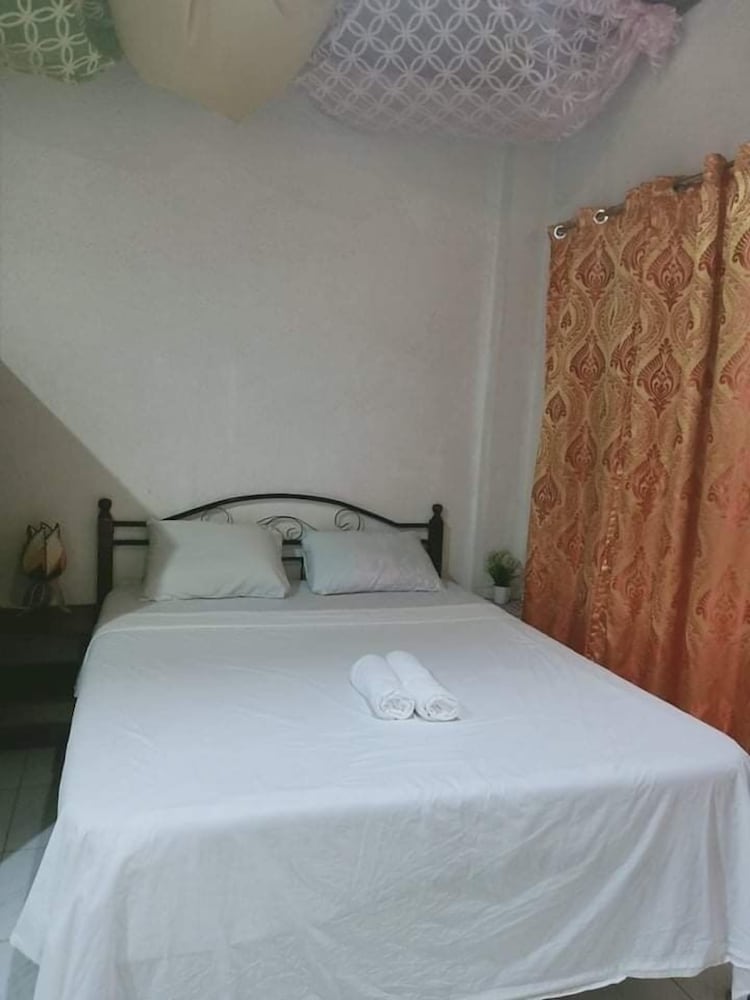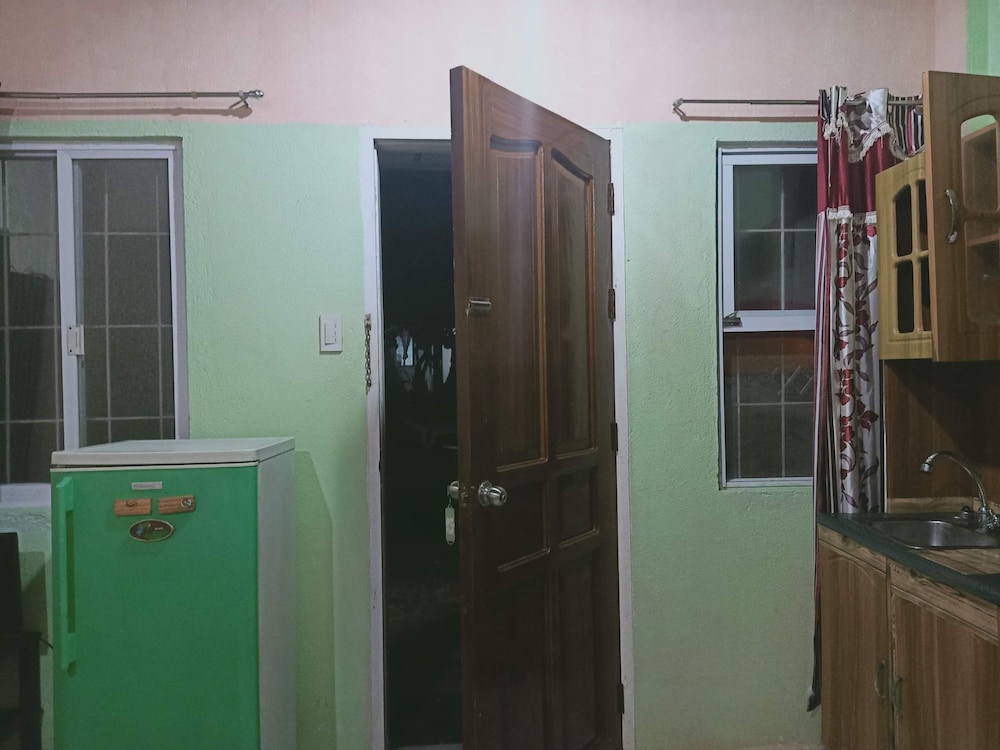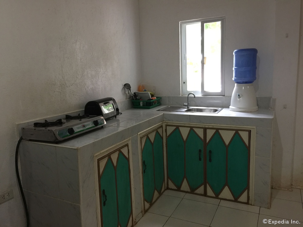 This is a budget priced hotel and it is a good value for the money. The place is a bit secluded, no real sign, just a narrow but very short dirt track but easily passable even in the rain. Not a sign out front that is visible from the road but the Google maps had it located very well. The rooms are a bit old, things are worn but in decent repair for the most part. The things that matter are okay, hot shower, plenty of water, a working satellite TV, a full kitchen with hot plate, fridge, sink, and plenty of dishes and cookware for five to eight people. There were three double beds, two in a closed bedroom with air con, one out in the main room. Two worn but covered arm chairs and a small sofa. The main area/beaches are maybe one to two kilometers away along with hardware stores, fast food places, and restaurants. A bit of a walk to the beach but you can park down at the Tourist Police parking lot for 100 pesos and it is an easy walk down past McDonalds to the beach. Parking for the beach is 100 pesos but you can redeem the ticket at a local gas station about 100 meters West of the parking lot, so if you need fuel you get that money back. All in all this is a great place for a budget visit to the area. Maybe five to eight minutes to the airport, maybe fifteen minutes to the big grocery stores in Tagbiliran.