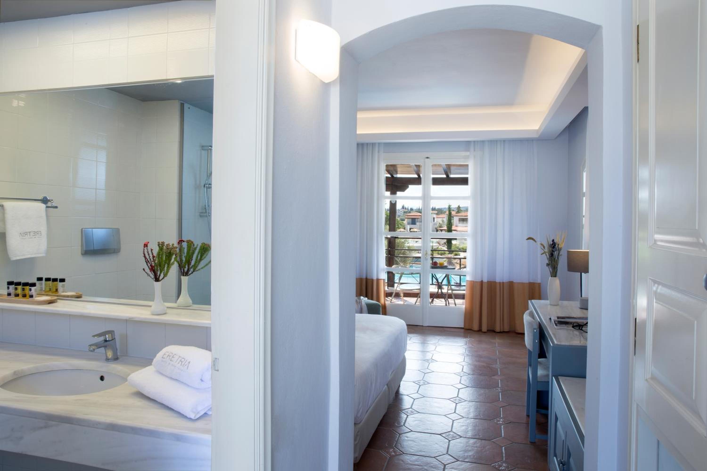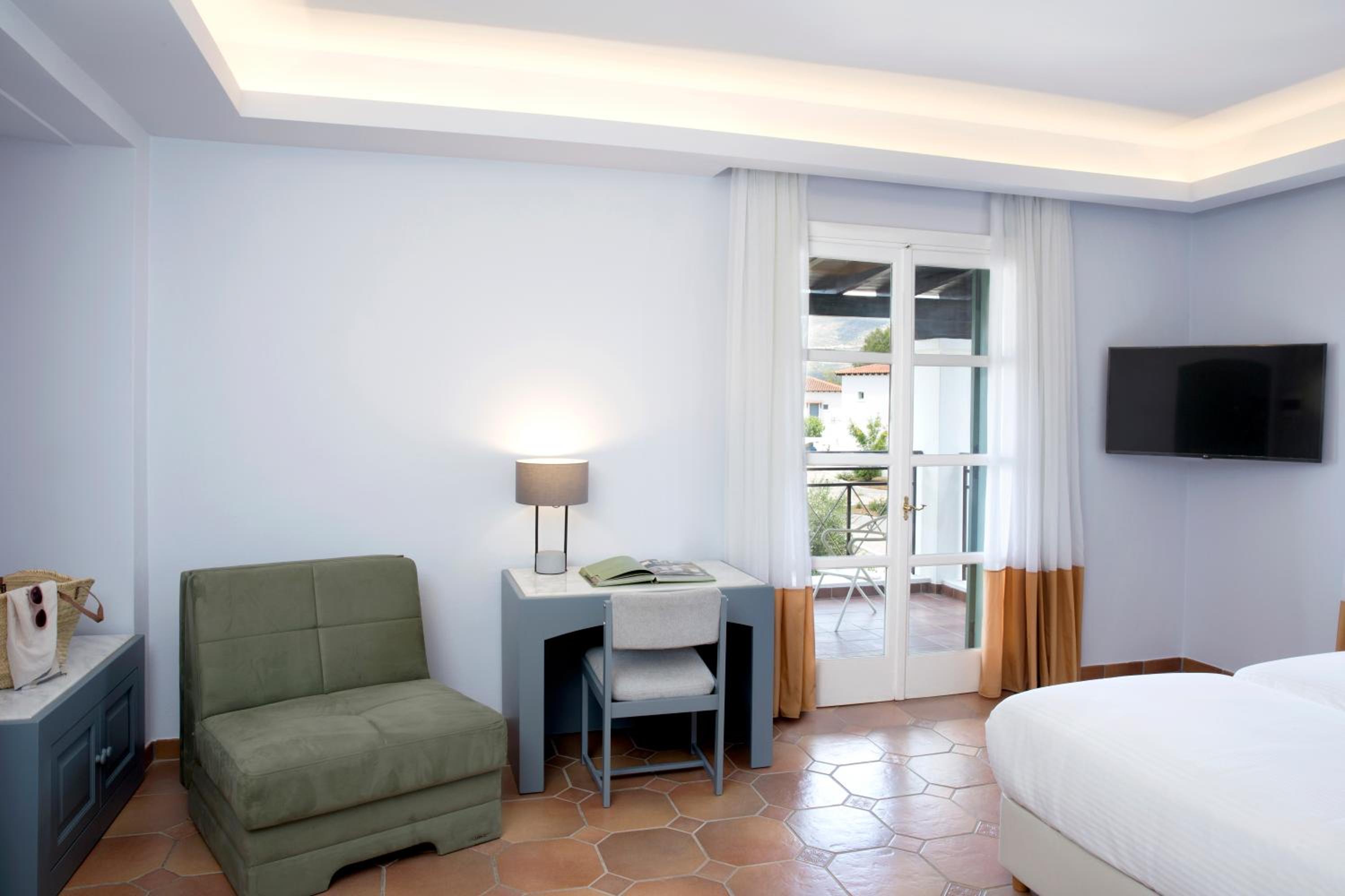 Eretria Hotel & Spa Resort offers elegantly designed rooms with modern amenities including air conditioning, flat-screen TV, and a seating area. The perfect retreat after a day of exploring Eretria.