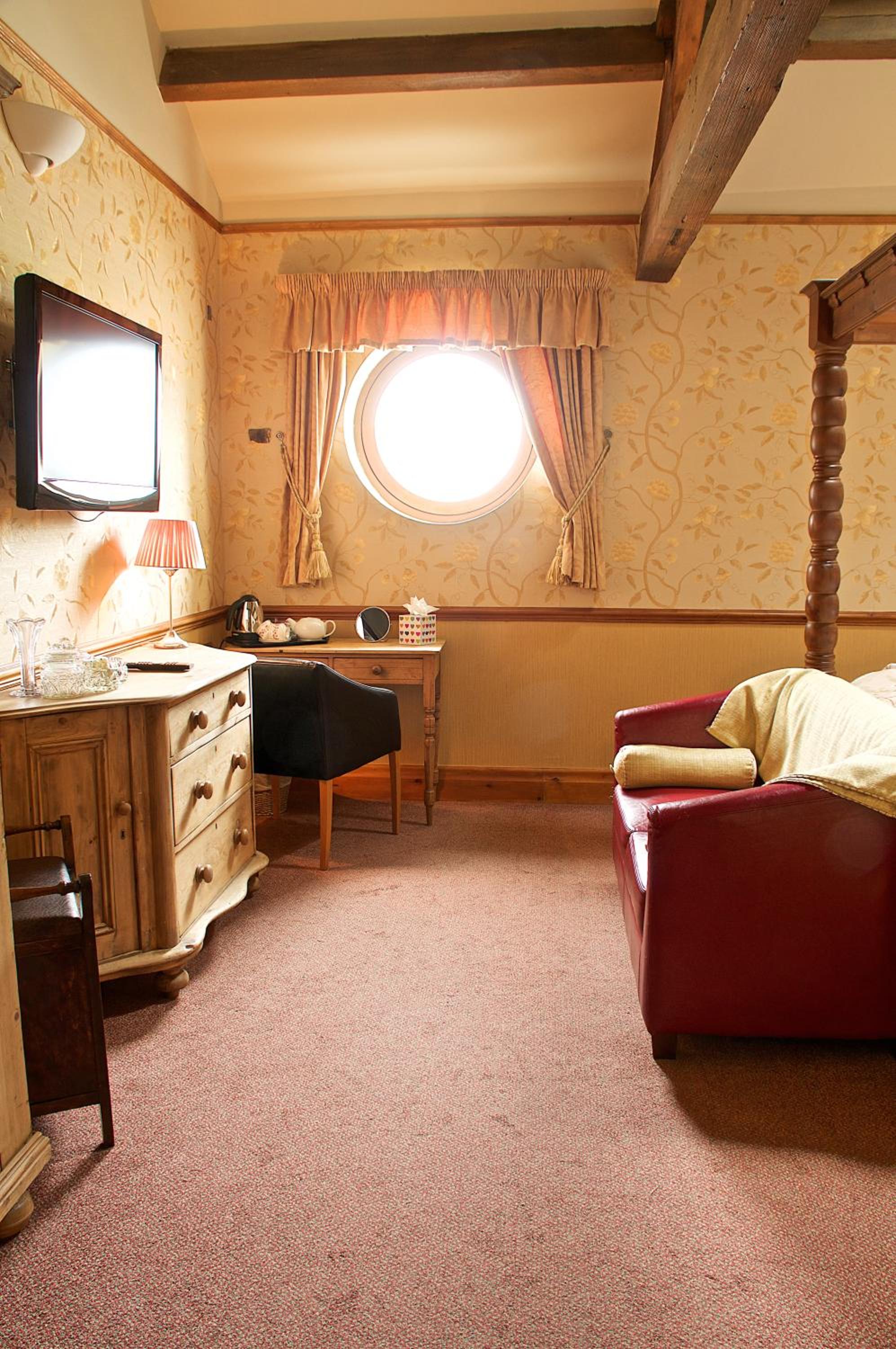 Luxurious Rooms with Modern Amenities: Each guest room at The Dog and Partridge features a flat-screen TV, private bathroom, desk, and kettle for your convenience.