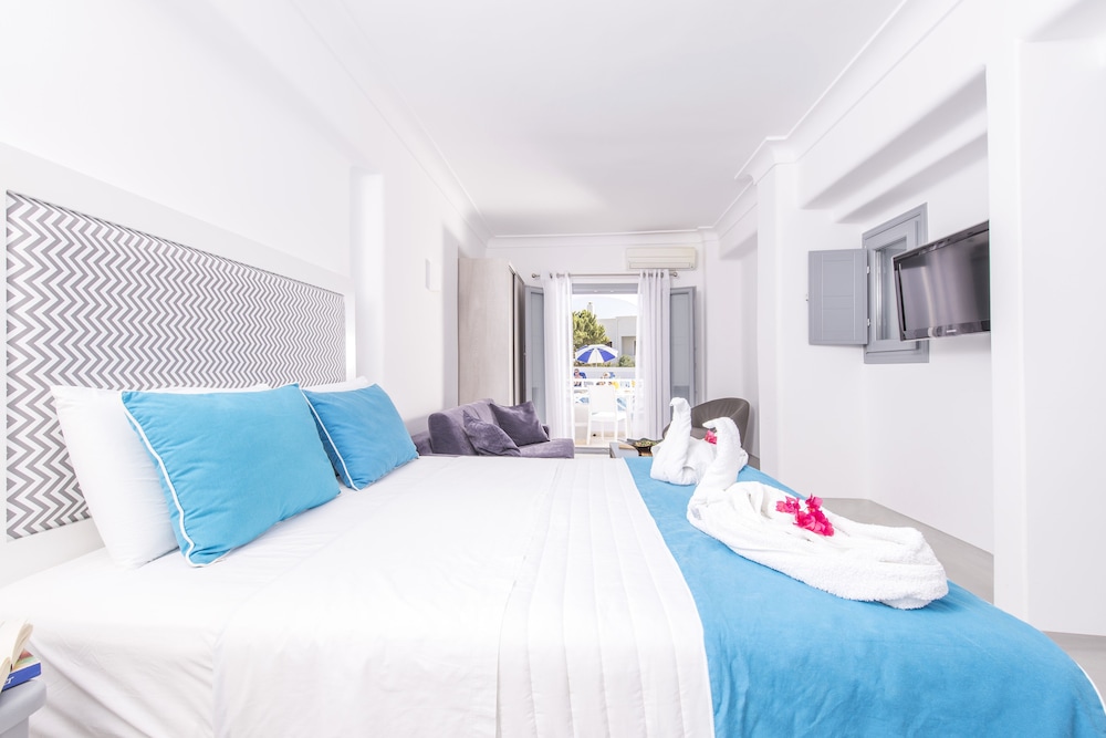 Staying at Blue Waves Hotel made our holiday! Everything about it was so good. Thanks to all the staff including Areti and Elana at reception, who were so welcoming, friendly and helpful. They gave us great recommendations and nothing was too much trouble. Lovely comfortable and spotlessly clean room, very relaxing pool area, where Mahood gave us great breakfasts. Location is great, close to the beach, bus stop, bakery and lovely restaurants. Highly recommend this gorgeous hotel. Thanks again, Nuala & Anne