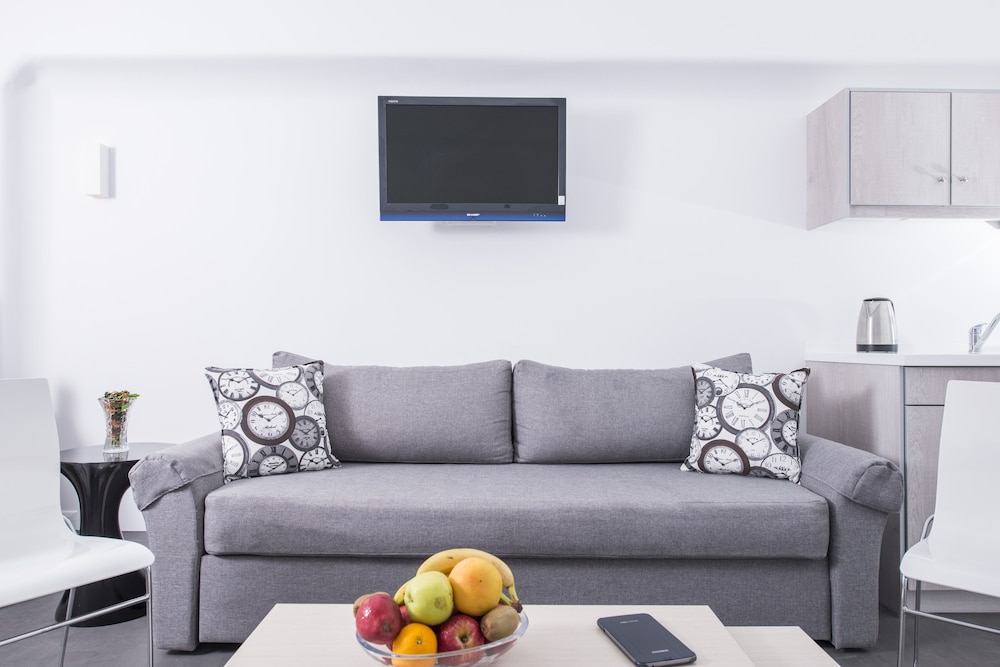 Lovely studio apartment with comfy beds and extra sofa bed for the kids. Sea views from the rooftop and an amazing rooftop pool which we loved to have midnight swims in.