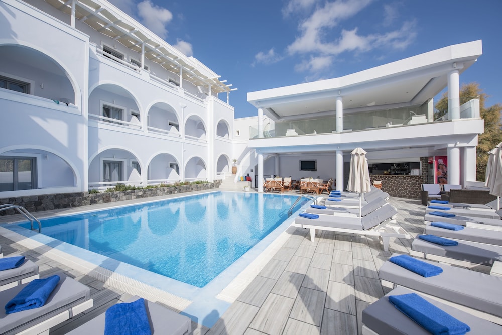 Book your centrally located stay at Blue Waves Hotel in Santorini now, just a minute away from Kamari Beach!
