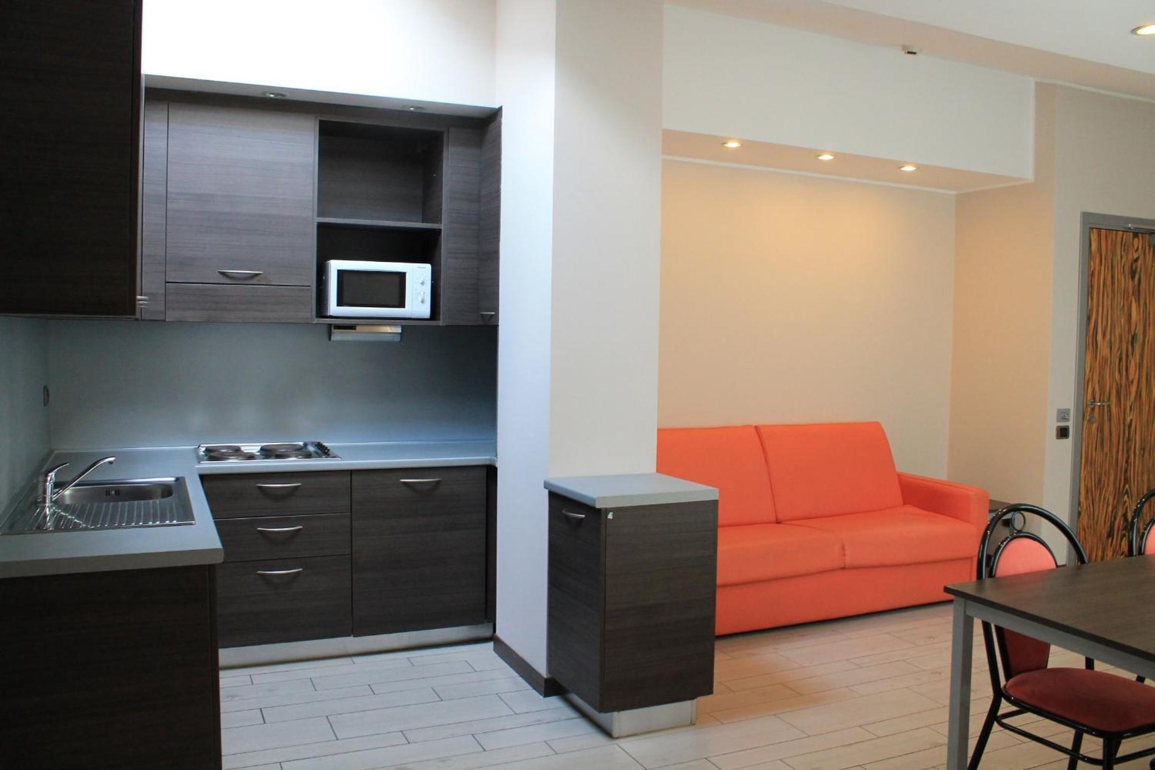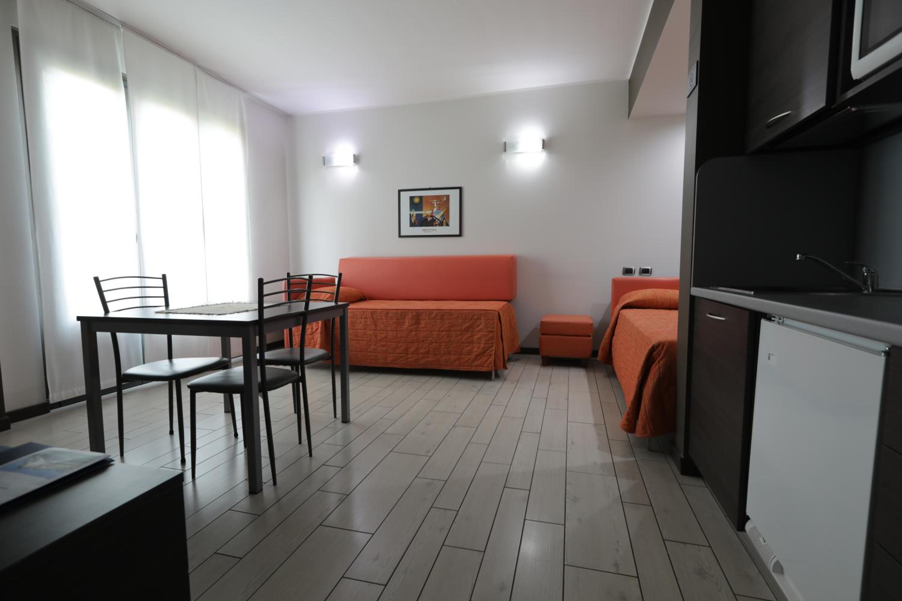 Experience comfort and convenience at Hotel Residence Aurora's modern self-catering apartments. Each spacious unit is equipped with a kitchenette, air conditioning, and a TV. Some even boast a private balcony for a touch of luxury.