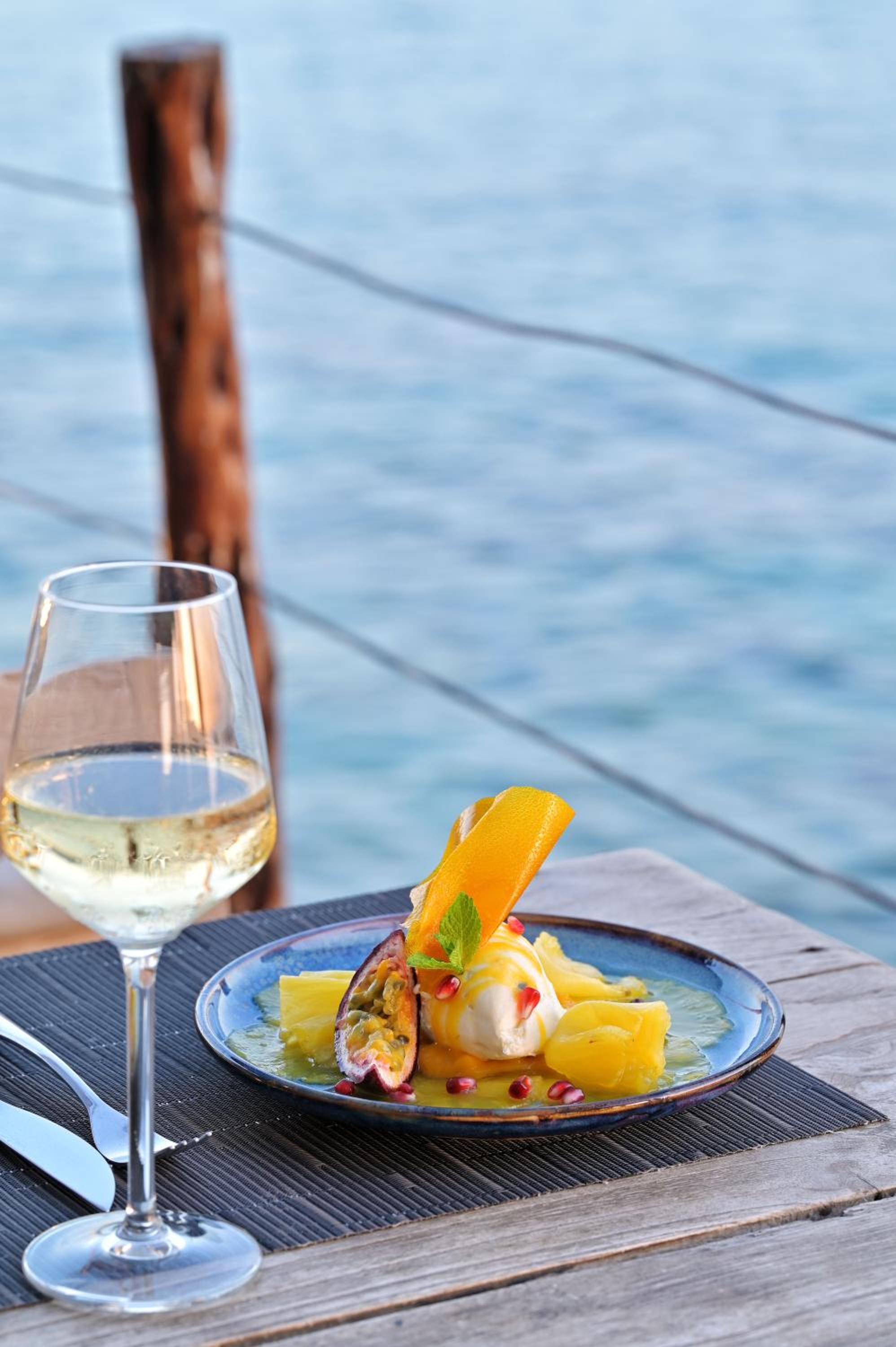 De ligging aan zee, het comfort van de kamers en de nabijheid van het uitstekende restaurant