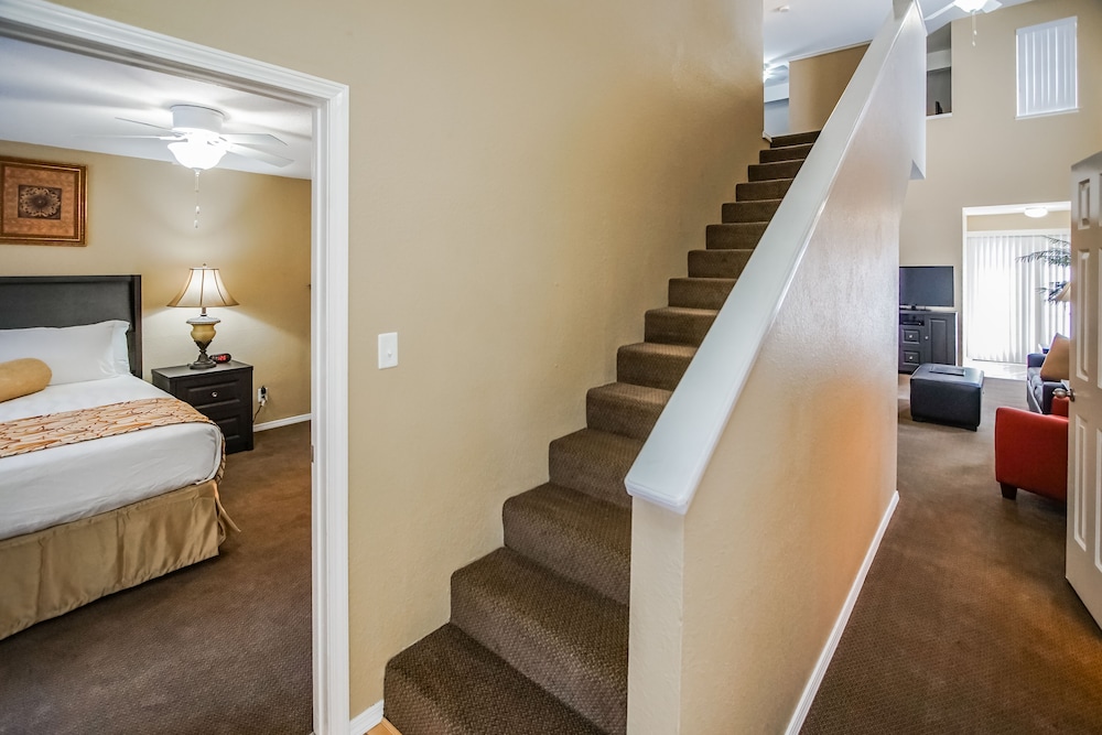 Unfortunately, the on-site pool was not working, so had to go to other facility if wanted to use a pool (we didn’t). Nice sized TV’s, but multiple channels (that had good movies) did not work and two of the TV’s had fuzzy reception. Well stocked kitchen-ware. Upstairs shower had low pressure. Downstairs shower much better. Upstairs bedroom was too warm - it did not get cool like the other rooms. Nice neighborhood - went walking up and down close-by streets. Tennis courts were nice for Pickleball! Game room had Ping Pong, Pool, and board games. Washer and dryer in our room was nice! Didn't like the shared deck area. Great location! Close to almost all the activities we did. Someone called us shortly after we checked in, which I thought was nice, but they were trying to get us to listen to the timeshare offer.