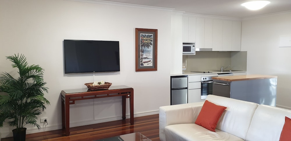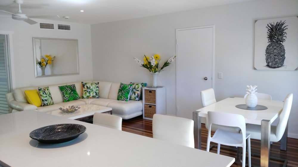 We stayed here as first stop on a road trip from Brisbane to Airlie Beach. Beautiful appartment and a great swimming pool - it was a Sunday evening so not that crowded. Close to shops for all food and drink