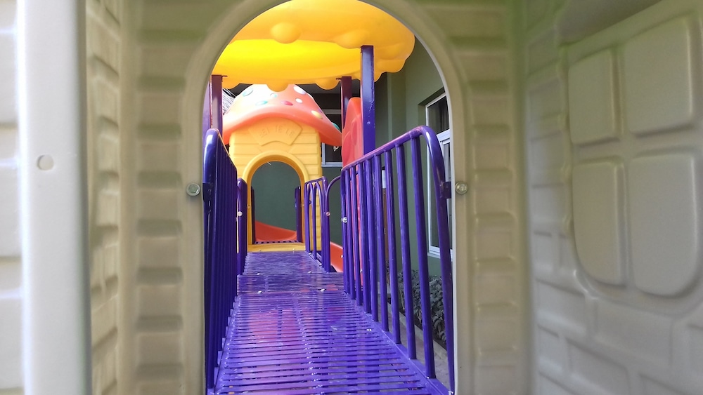 Picture online are very old, it does not look like that in real life. Bed was very hard and uncomfortable. Children area is missing....