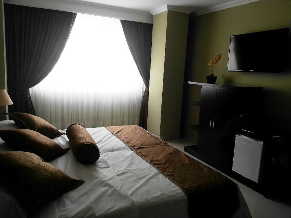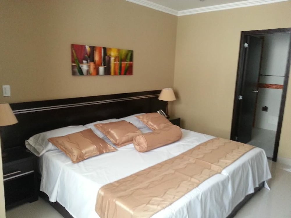 La recepcionista Yesenia muy desagradable la atención, negativa, me dijo que la reserva no estaba, que no la habíamos hecho. Al final nos dio una habitación con una columna de concreto en la mitad de la habitación. Los otros recepcionistas de la noche más amables. El desayuno pésimo, los bultos de naranjas encima de las vitrinas, no que cosas. Los meseros con los uniformes de color blanco, pero negros del sucio. Los ascensores no servían, no un desastre de hotel. Nos quedamos ahí, pero, jamás volvemos y no vuelvo a reservar hotel por esta página más nunca