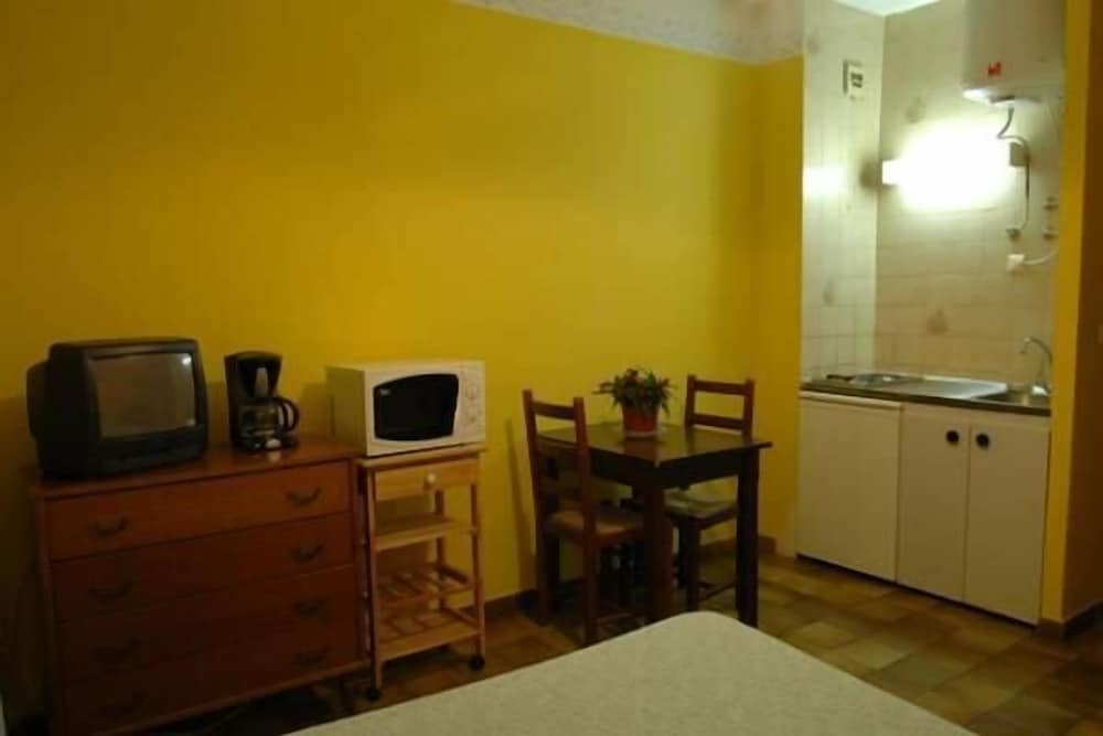 l'hôtel se trouve dans le haut de la ville, proximité des commerces ( pratique pour faire ses courses),, au calme, tout près de la magnifique citadelle et du port, studio simple mais propre, bon matelas, salle d'eau avec wc, linge de toilette non restreint, vaisselle permettant une cuisine appropriée aux vacanciers, électroménager en bon état, télévision, bon accueil, un séjour très agréable, merci à toute l'équipe, une adresse à communiquer sans modération :) attention : pas de réception après 20h00.