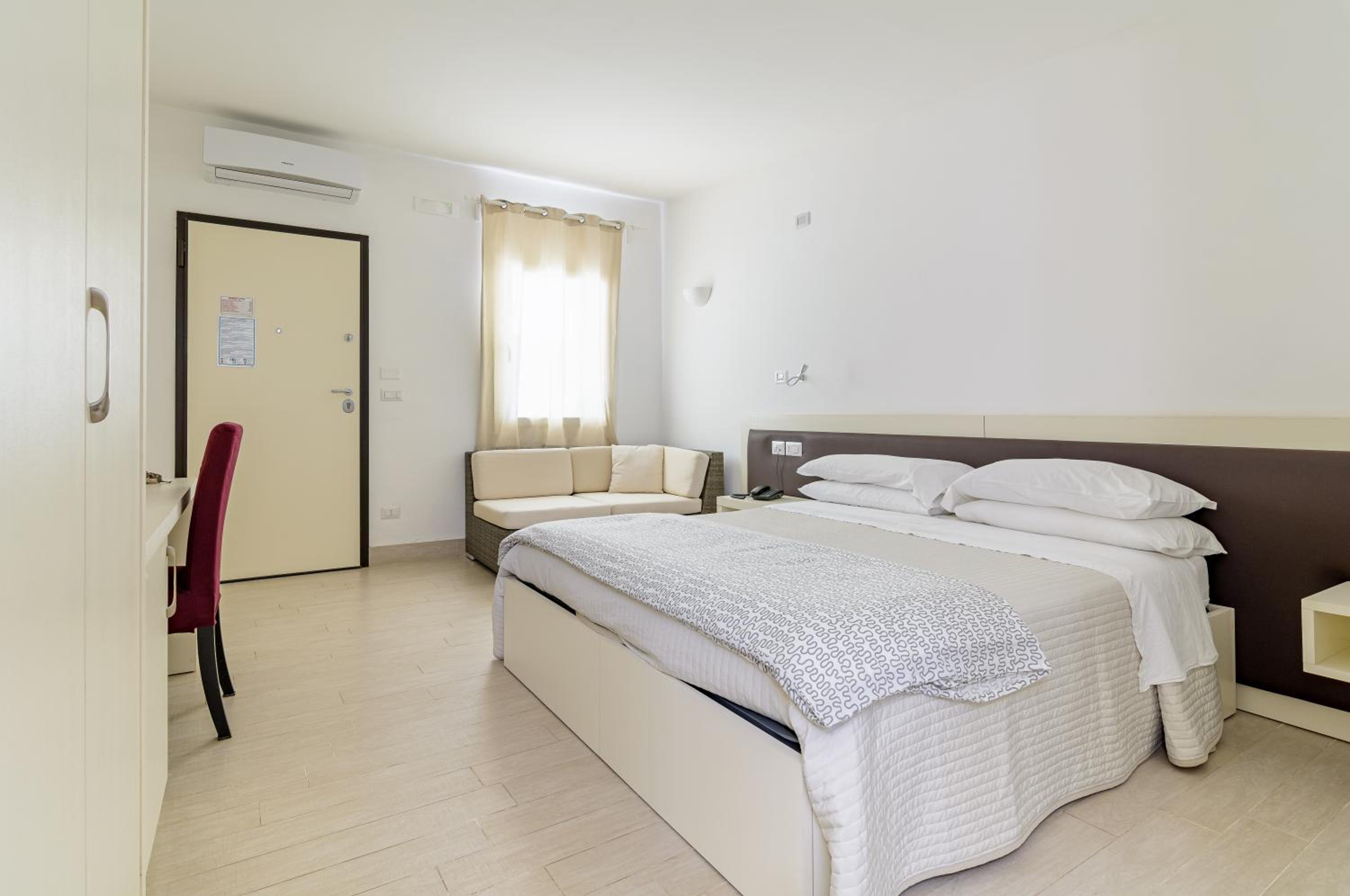 È un 3 stelle che si paga come un 4. Si potrebbe migliorare avendo alcune accortezze. Es: se si ha una macchinetta del caffè in stanza e si soggiorna 4 notti sarebbe opportuno offrire almeno un caffè al giorno a testa così come lo zucchero e far trovare la macchinetta svuotata dalle cialde precedenti. Inoltre dopo aver speso più di 700€ prendendo una bottiglietta d'acqua alla reception per 1€ sarebbe stato carino averla in omaggio. Un pò più di attenzione alla pulizia: porta scorrevole del bagno internamente macchiata con strisce gialline, due animaletti della polvere trovati sul cuscino. Aggiungerei anche un piccolo cestino in stanza, non solo in bagno.