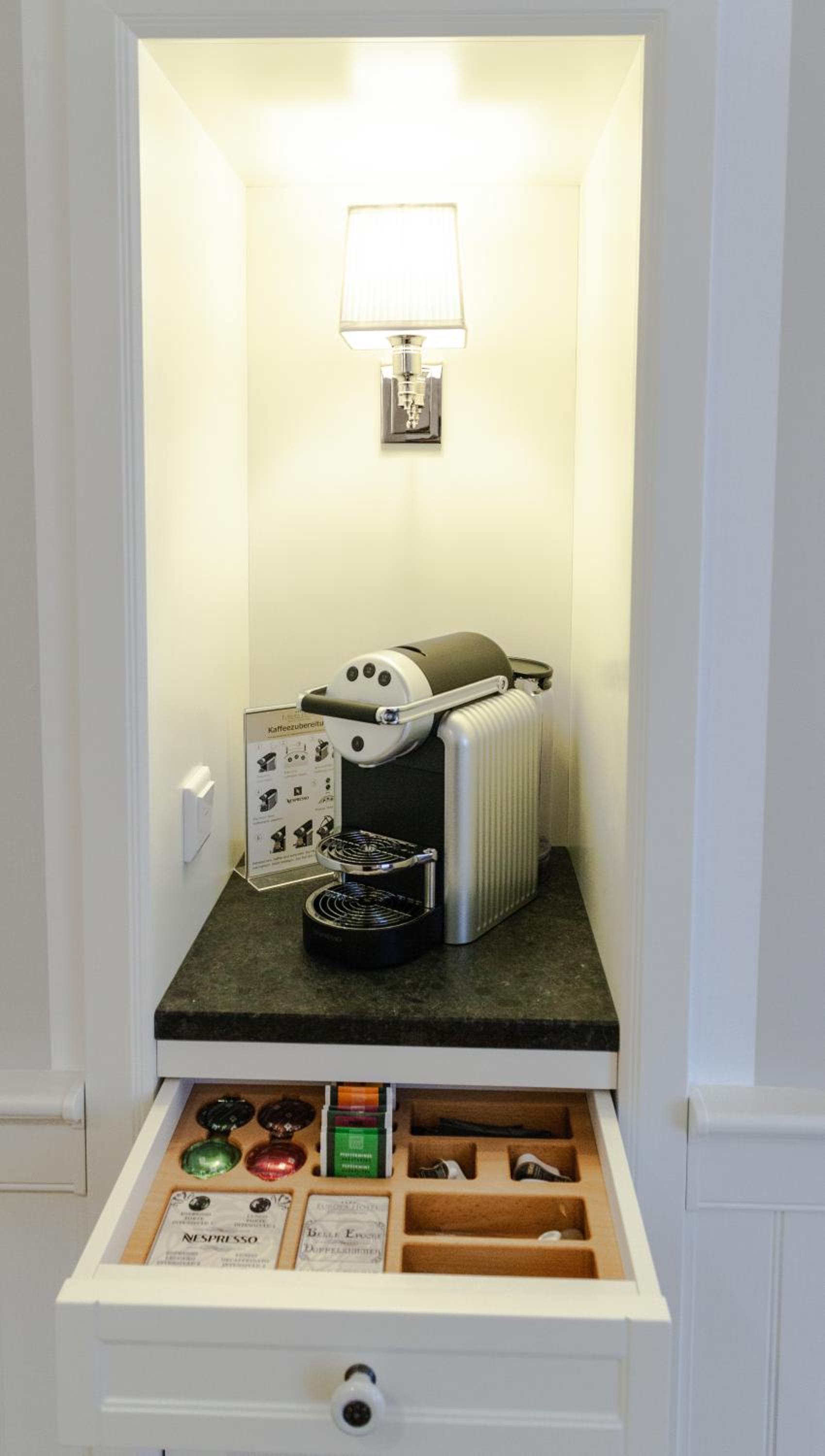 Im Nebengebäude sehr beengt,keine Kaffemaschine und somit Miniküche nutzlos.