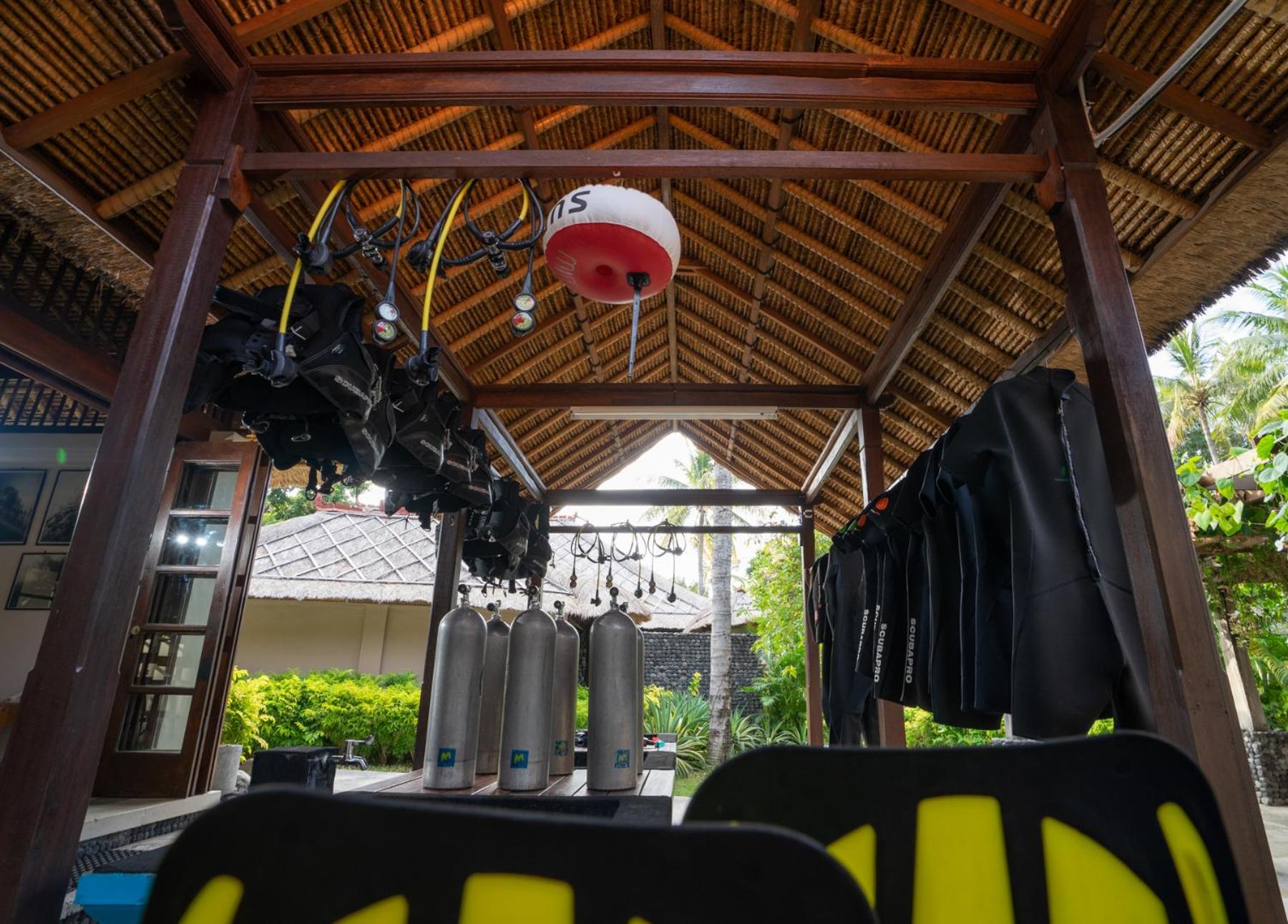 Enjoy a refreshing dip in our outdoor swimming pool or explore the underwater world with ease at our dive centre.