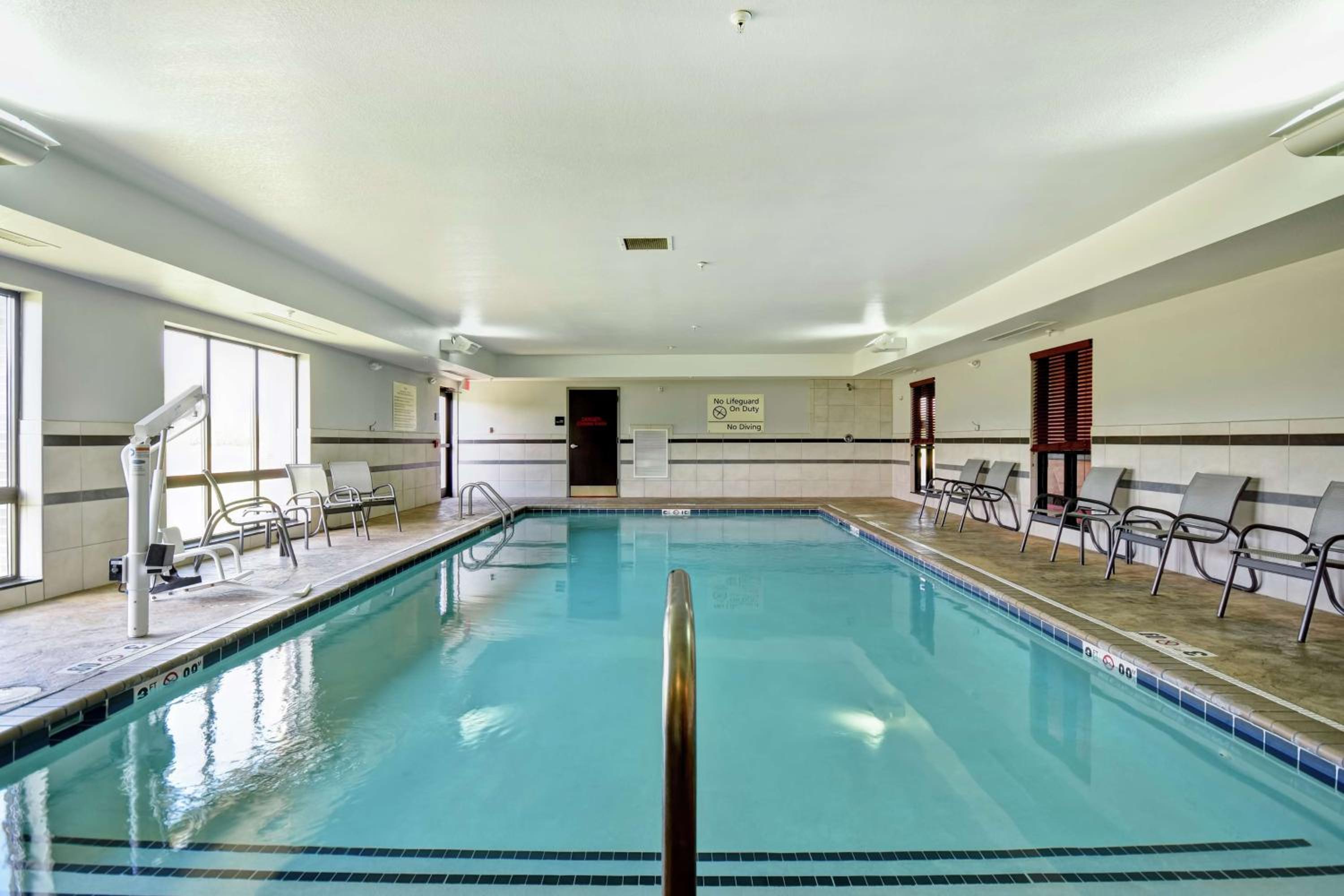 Enjoy a refreshing dip in our indoor swimming pool or keep up with your workout routine at our on-site fitness facilities.