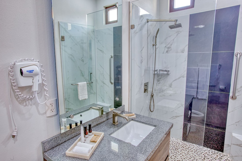 Small boutique hotel with attractively appointed modern rooms with spacious bathrooms with large walk-in shower. Good water pressure and plentiful hot water. Excellent breakfast/lunch restaurant on site.
