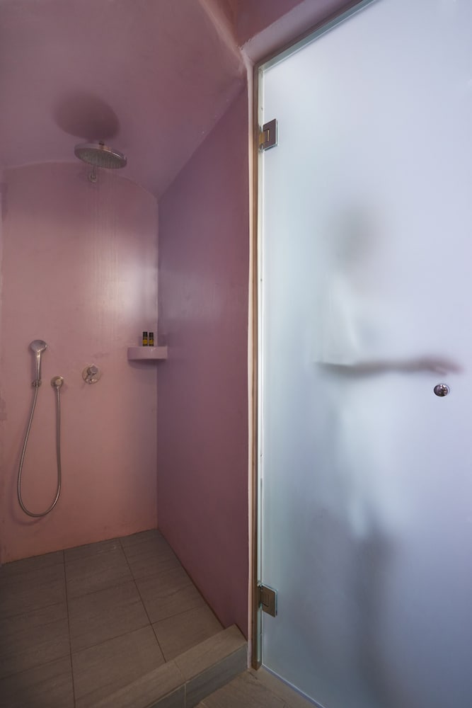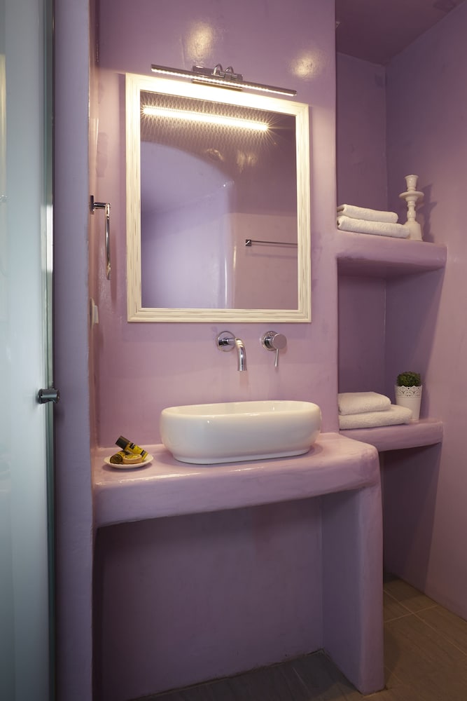 The queen suite also has a private plunge pool (jacuzzi) on the balcony, enclosed in almost a 'cave-like' atmosphere, with lights for a night swim. Because of that, our jacuzzi was truly private, compared to other hotel suite jacuzzis. Most of them are on ground level and have tourists walking by, however because the queen suite's balcony is elevated and the jacuzzi is enclosed, it is actually private. The room was spacious, and always clean. The location of the hotel is also great as it is situation in Imerovigli (right between Fira and Oia). There is a bus stop just a few minutes walk outside of the hotel, or you can rent an ATV to get around the island, and park it for free at the hotel.