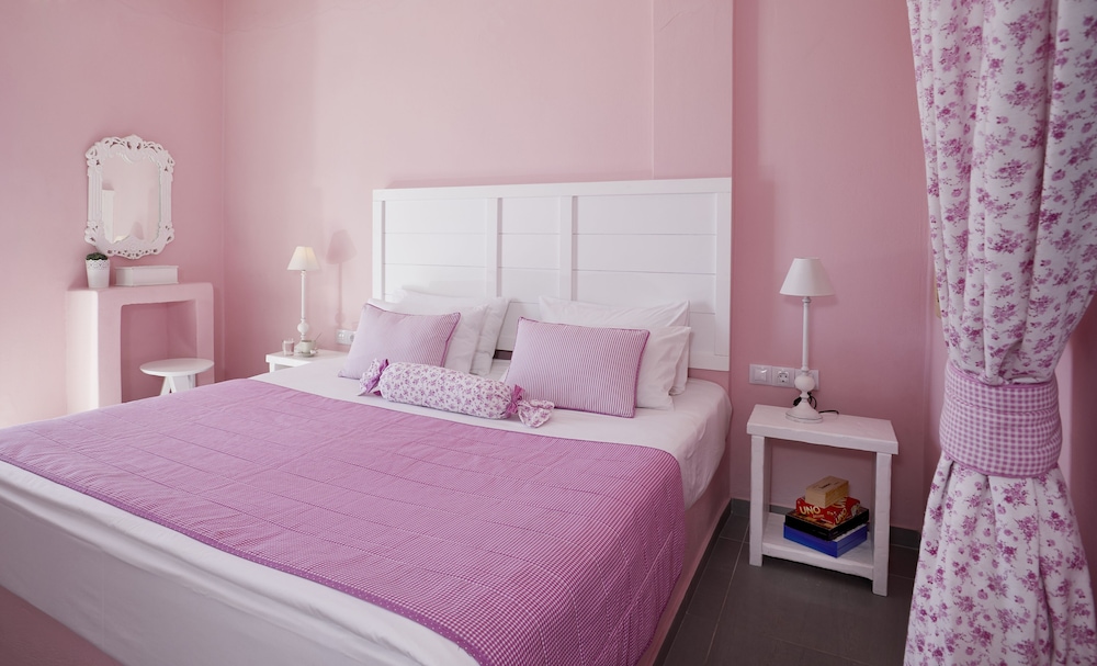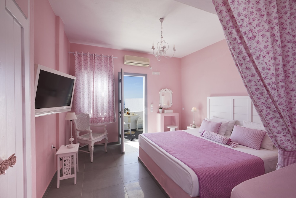 For Santorini in July this property was reasonably priced and gave good value. Super clean and very courteous staff. Room was whimsical (we had a yellow theme) with a cute yet small balcony. Nice view. The pool area was clean and attractive with enough chaises longues. Terrific view from the decks and terraces around the pool. Really liked the location in Imeroviglia. Breakfast ok and was delivered on time but you had to make your own coffee. Bed was a king and very comfortable.
