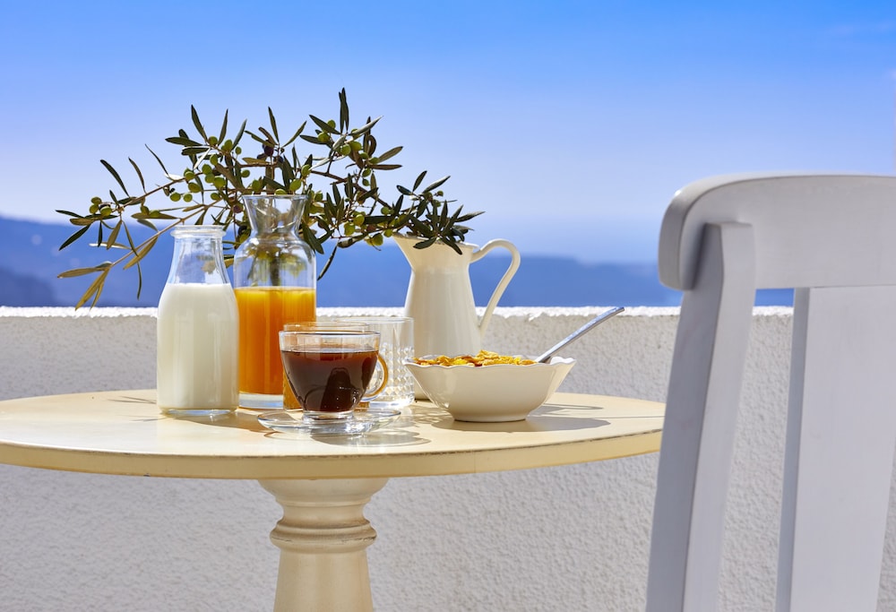 Pros: The location was amazing and accurately described. The breakfast was Insta worthy and tasted as good as it looked. The variety was great and we saved some of the bread and pastries for an afternoon snack. The coffee was delicious. The bed was comfortable. Shower water pressure was good and hot. Bath products provided were nice. Additional coffee and water bottles were provided upon request.Santorini is beautiful and we enjoyed our stay.