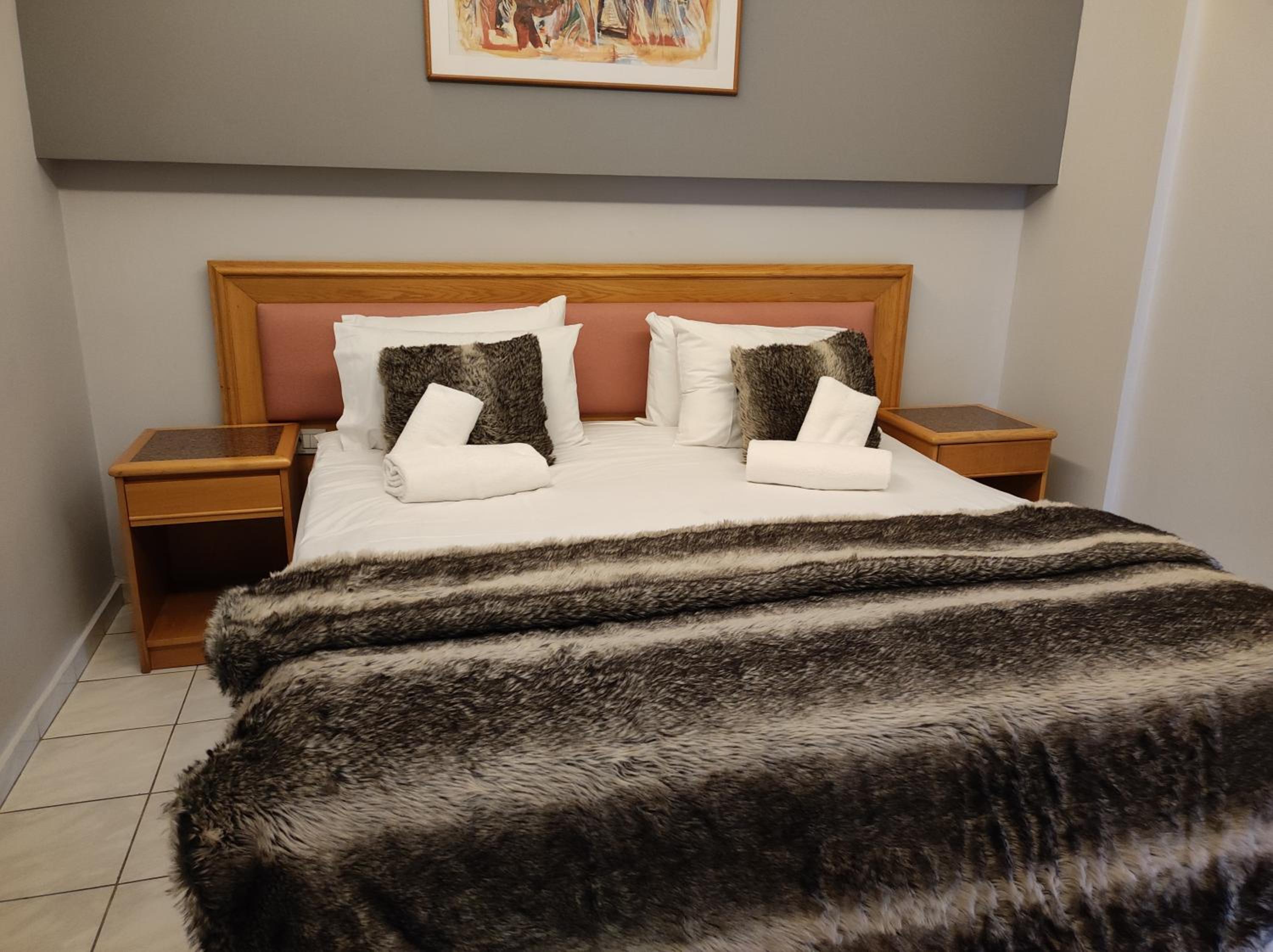 The air-conditioned rooms at N E P center Hotel Rodos offer a cozy stay with modern amenities including free WiFi, flat-screen TVs, and private bathrooms. The hotel ensures a comfortable experience with room service and a 24-hour front desk.