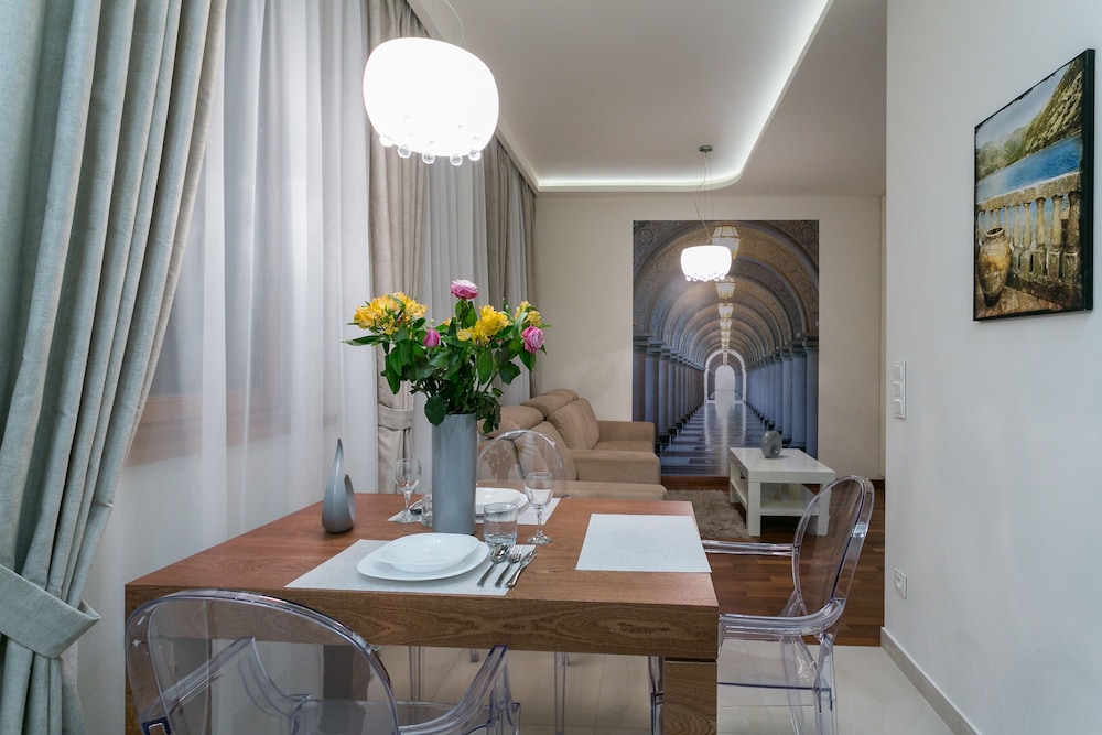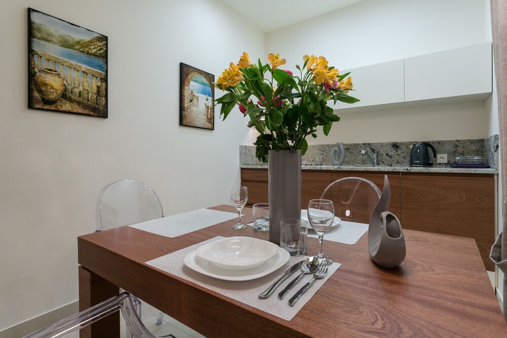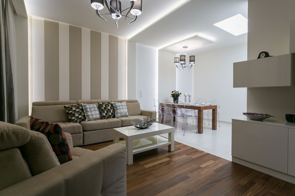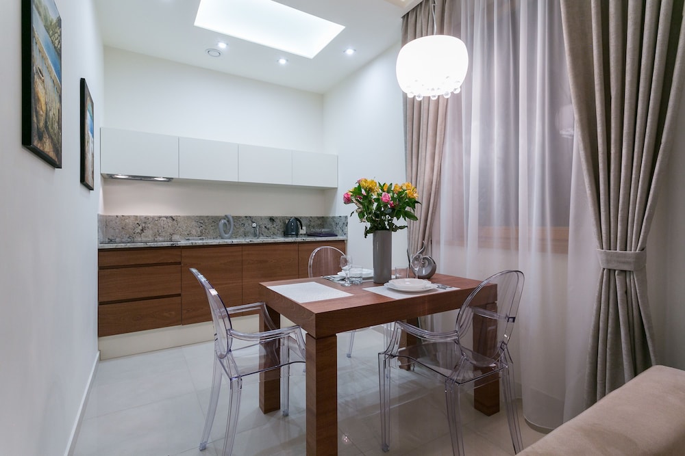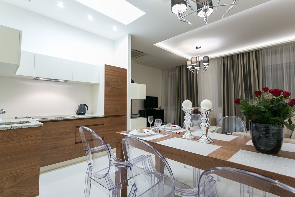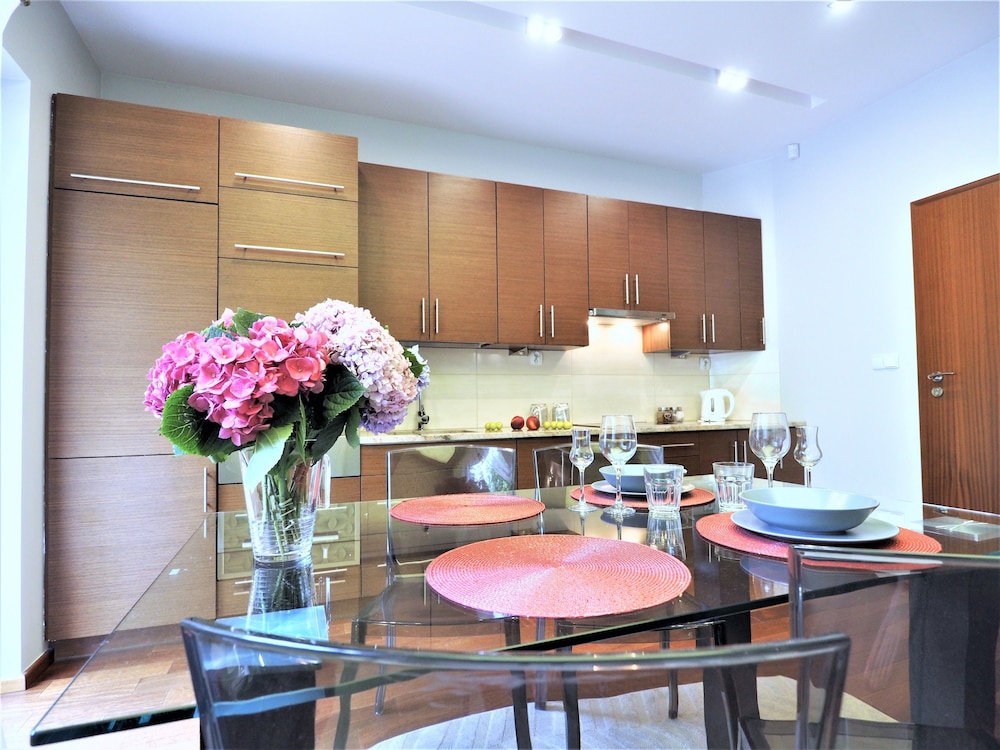 The apartments were modern, stylish spacious and very clean. There are no staff on reception but staff were very helpful when booking and organised an airport transfer for us. We couldn't find a travel adapter in local shops for our phone chargers and a member of staff very kindly brought us in a loan of one for home. We were due to check out at 11am but were not being picked up till 6pm staff also kindly left us keep 1 of our apartments till we were picked up :-) They are within walking distance to Krupowki Street, lots of lovely bars and restaurants near-by.