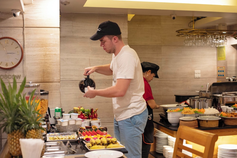 The choice of breakfast is wonderful for a dmall hotel, the only drawback is the small dining area. Gteat access to train street and there are so many dining options on the mall outside it wil satisfy anyone's culinary needs