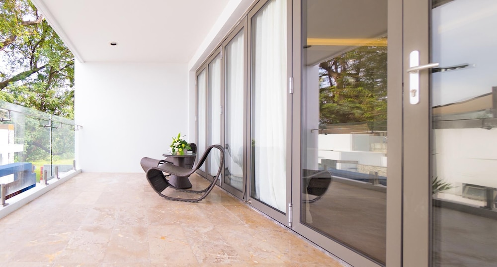 Wir hatten eine der "Villen" direkt neben der Rezeption. Ausblick unten gleich null, oben Ausblick auf Dächer von anderen Gebäuden, die vor sich hin verroten. Schatten, schmutziger Pool, Sicherheit bei Eingangstür gleich null, Schiebetür unten nur von innen abschließbar, Wartungsräume im Zimmer frei zugänglich und für Kinder lebensgefährlich. Tiefgarage mehr Abstellkammer als Tiefgarage.