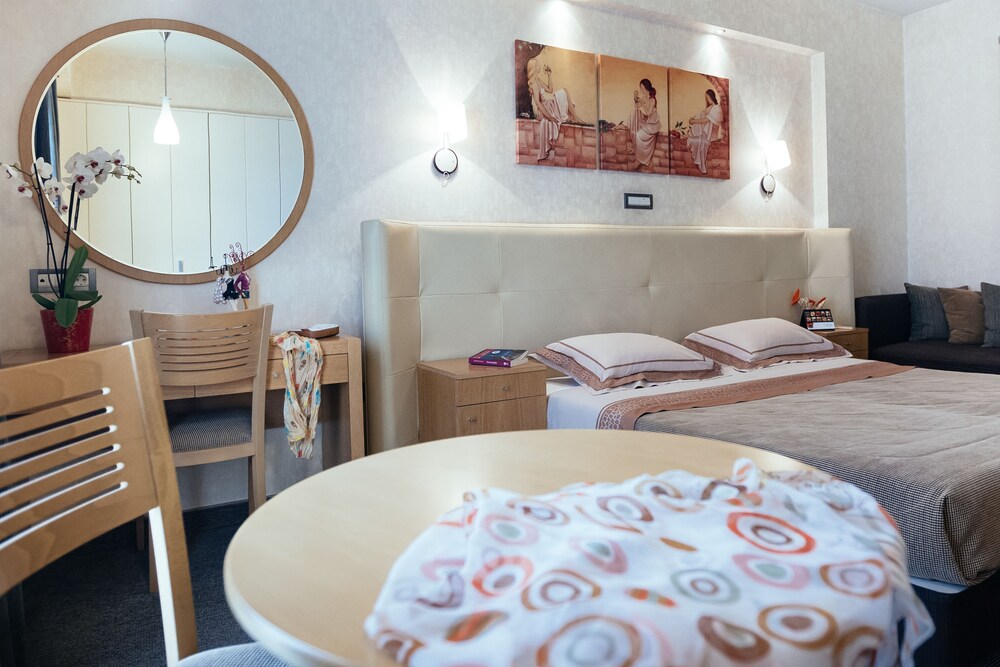 Bad- they advertise on Expedia parking included, however there is street parking only. We booked a non-smoking room, they put us in a smoking room without even letting us know. After complaining they gave us a room that had a lesser smell. The staff at the reception told us that they cannot enforce the non smoking in the rooms, as customers smoke in the rooms even if they are told not to do it. We stayed in Greece at five different hotels and this is the only one we had this issue. This is not a cheap hotel, therefore we had high expectations. I would not recommend and return due to the false advertising and the smoking in the rooms.