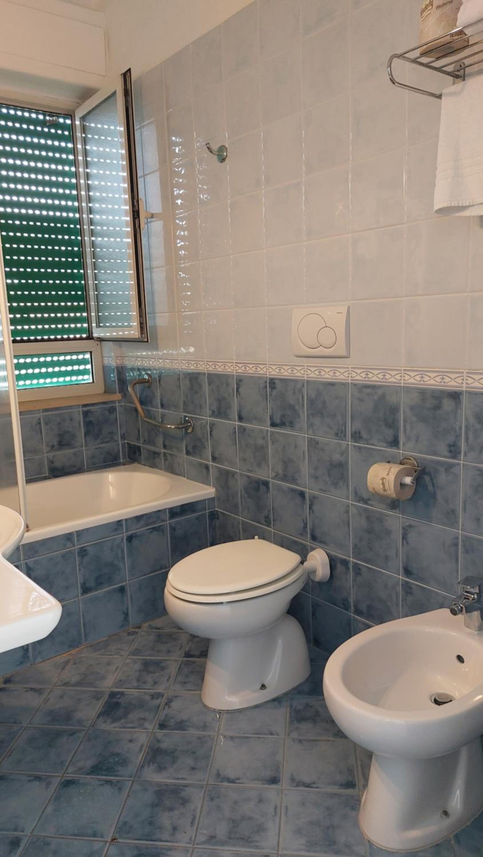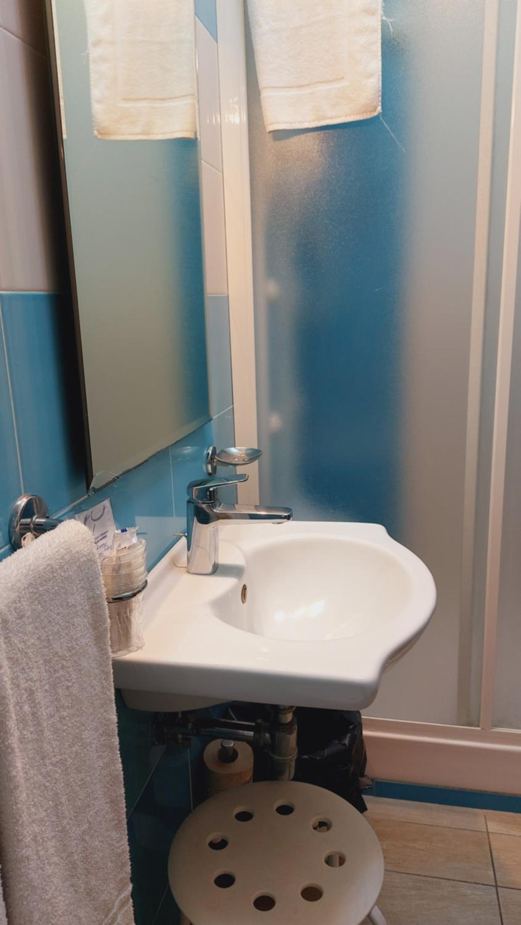 camera vecchia ,bagno vecchio ,letto matrimoniale composto da due letti singoli uniti a dislivello ,colazione povera .