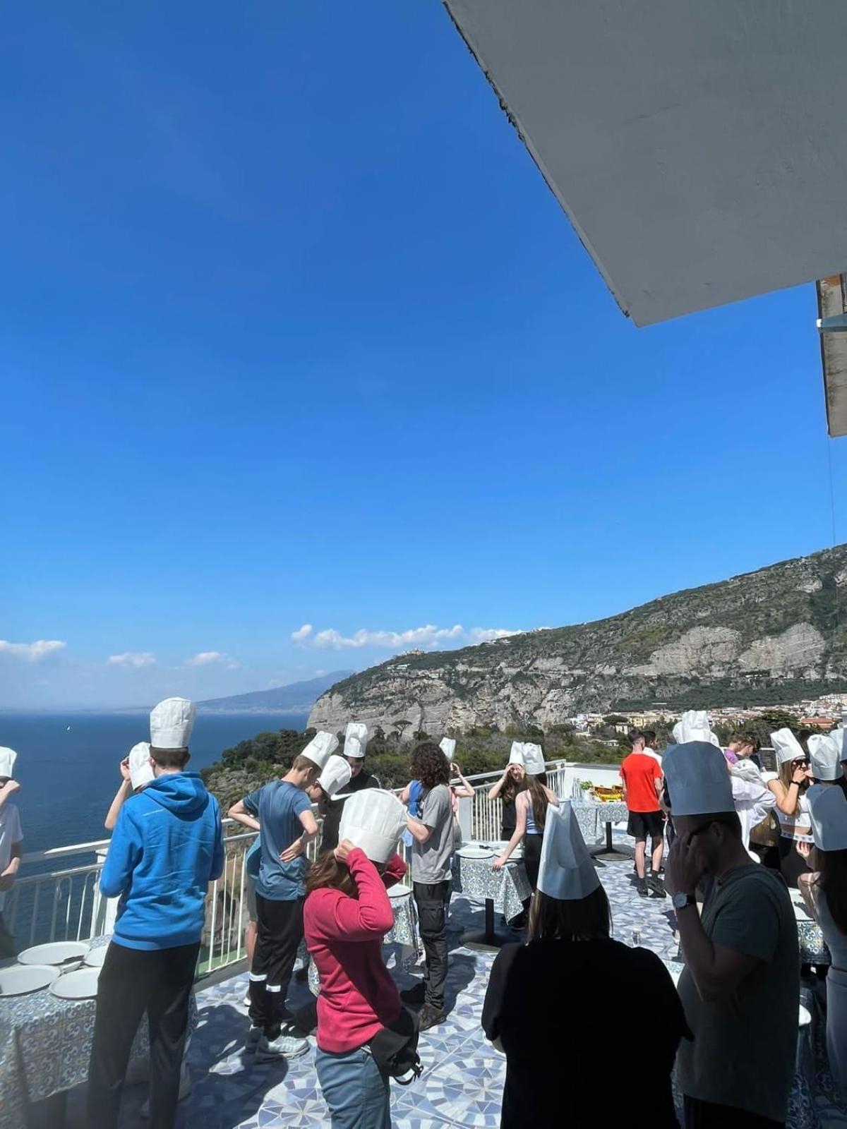 Explore Sorrento's sandy beach, easily access the Circomvesuviana train for trips to Pompeii and Naples, and enjoy rooftop entertainment overlooking the sea.