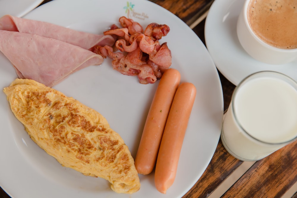 Läget var mindre bra. Fanns ingen restaurang på hotellet inte ens möjlighet att köpa ngt drickbart. Frukosten serverades i en omysig matsal. Enkel buffefrukost med det sedvanliga. Få bord i "matsalen". Grannrummet hade vägglöss som personalen inte tog på allvar. Även vi fick misstänkta djurbett som ingen i personalenen brydde sej nämnvärt om. Bra med shuttle bus till stranden men den kunde ha gått lite oftare. Ett plus var strandhandukar. Vi hade rum med poolaccess vilket var annars rymligt och bra. Lite väl hård säng.