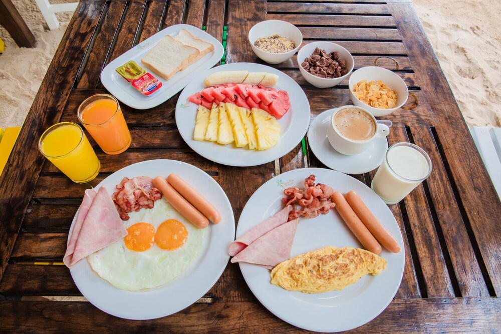 Average budget hotel. Good pool. They do not provide hand towels even after making a request.This hotel could be a gem if they maintained it properly. There were issues with water pressure.Very good egg/omelette and bacon for breakfast.Besides that not much variety.There was an issue with hotel staff burning leaves in the garden on almost daily basis creating a choking smoke. As said before a bit of effort from management would render this hotel a very good choice for Khaolak.