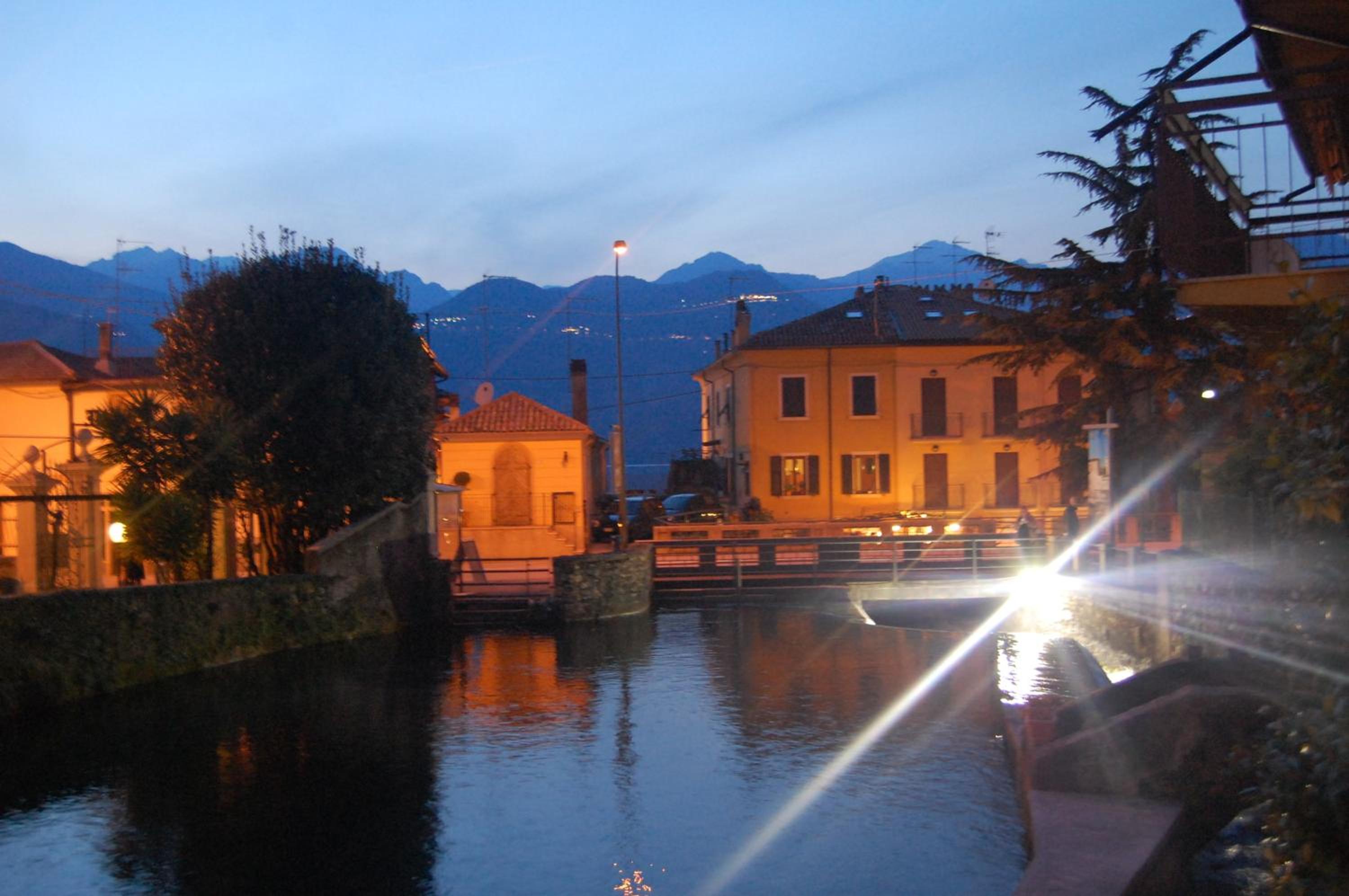 Die Lage am Gardasee und der kleine Fluss vor dem Haus. Das Hotel hat eine Bushaltestelle direkt vor dem Haus.