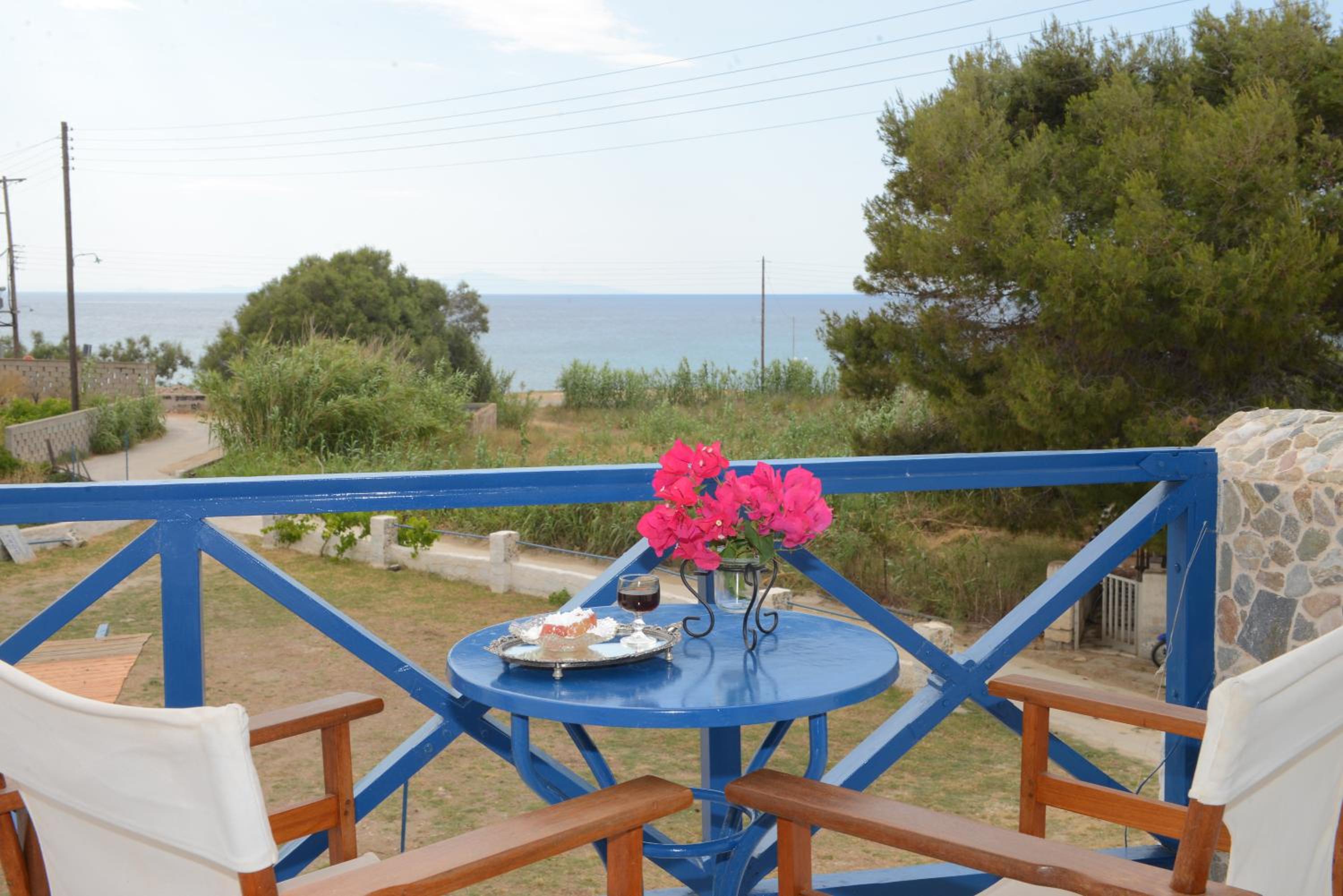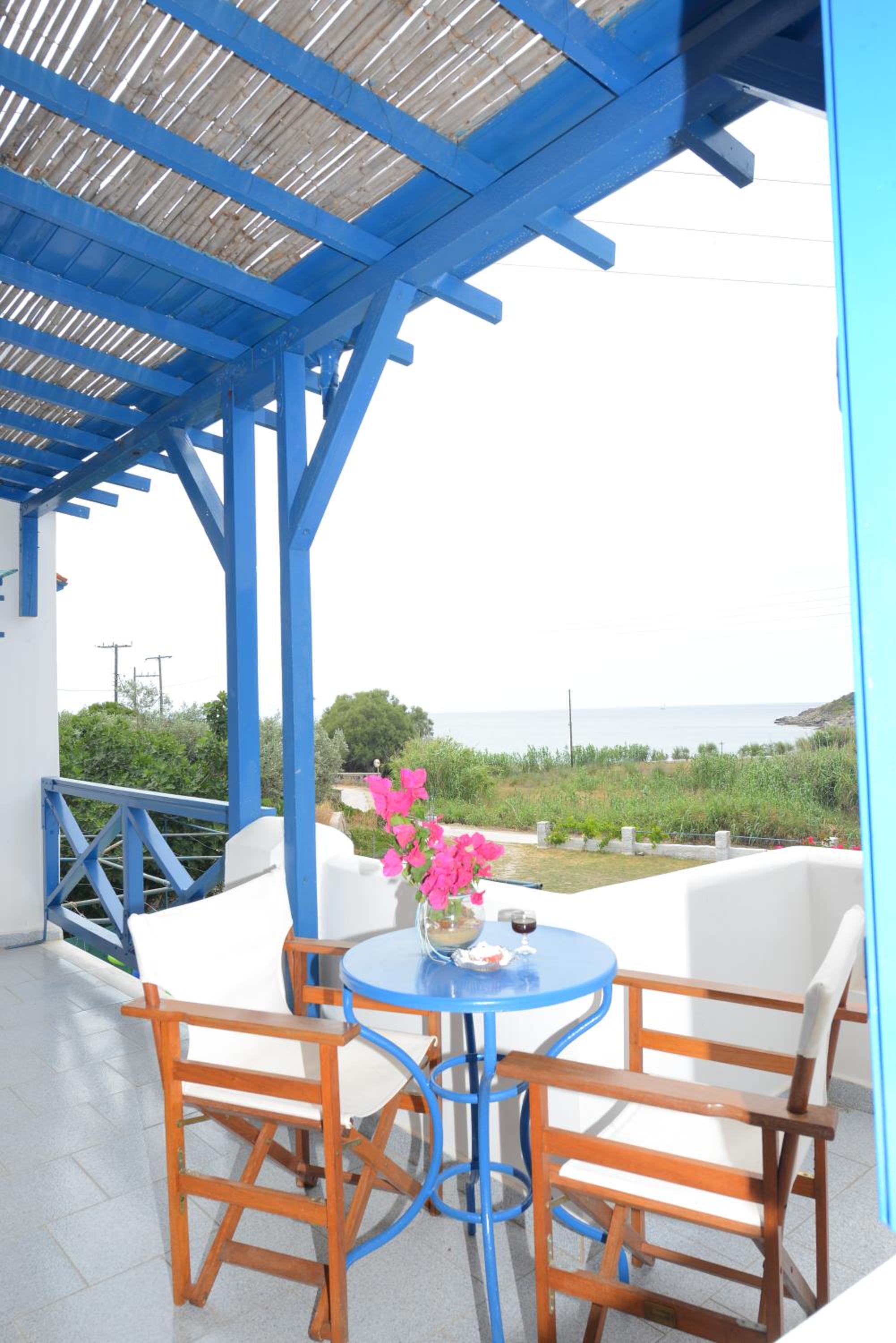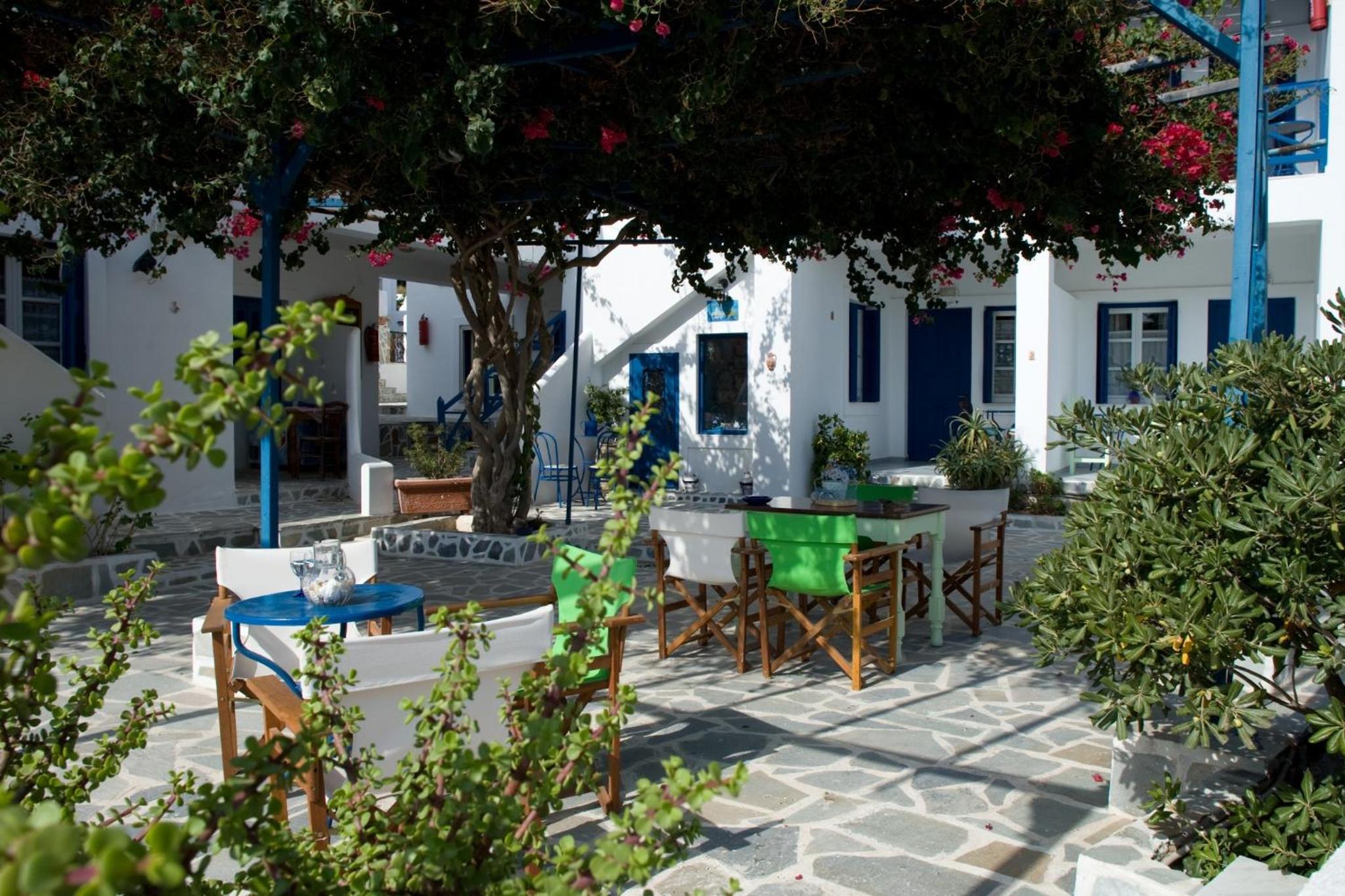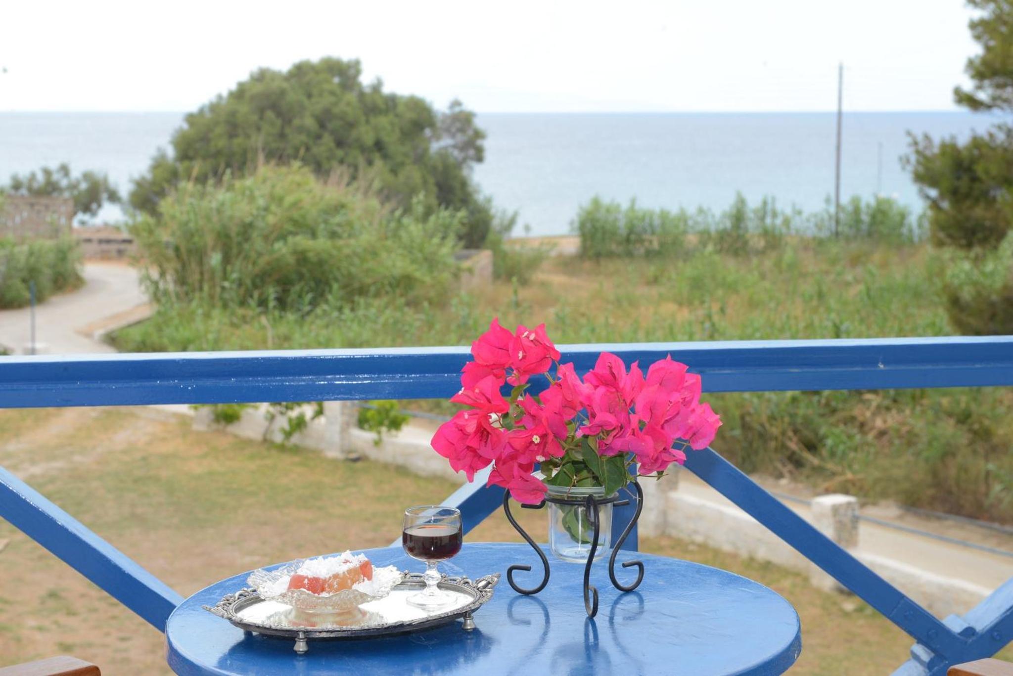 the hotel is super cute, right on a beautiful beach and very close to a bus stop. the cheese and spinach pies made by Dora were amazing, would definitely recommend.