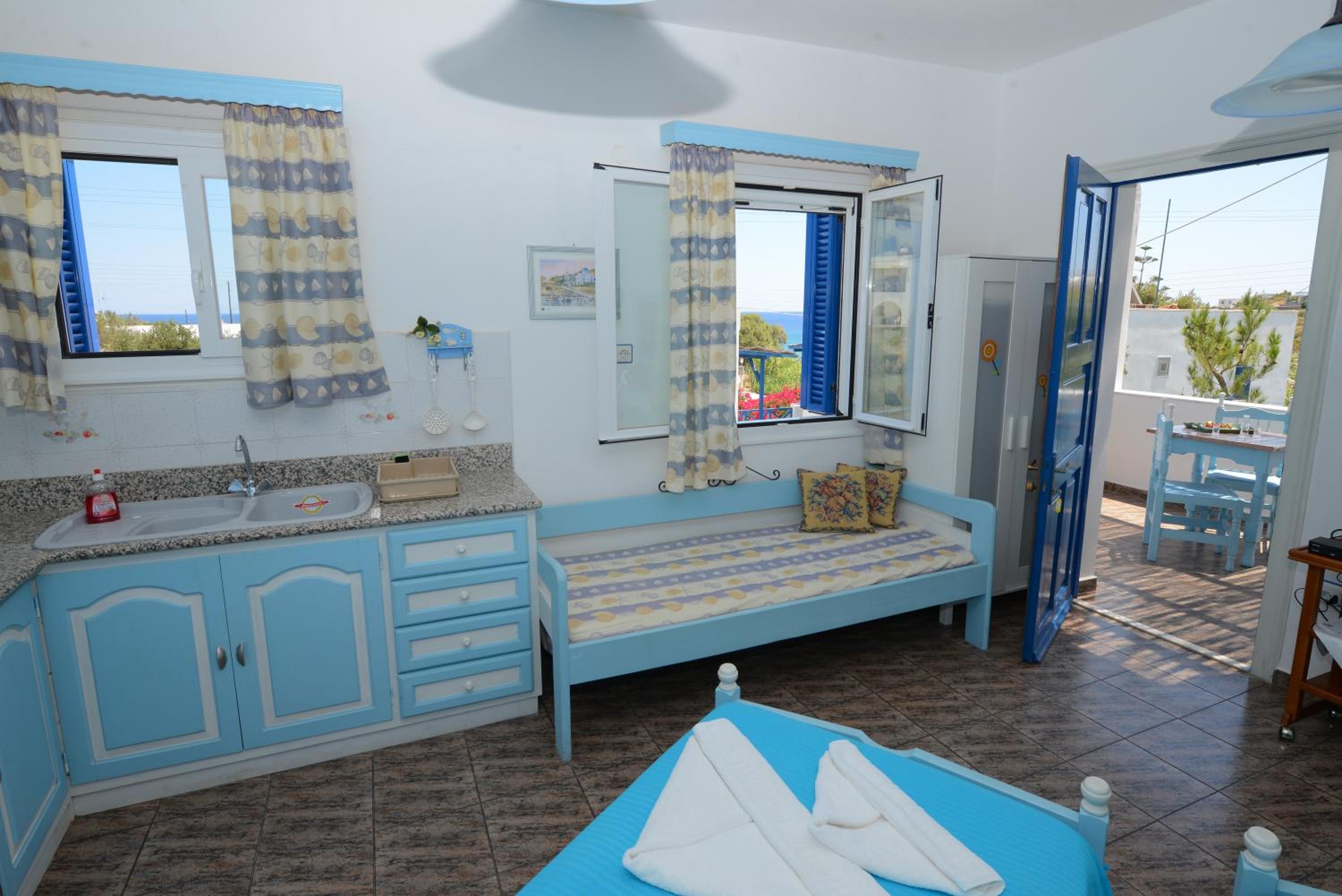 Everything was perfect. The apartment is just in front of a little beach (not the best of Syros) and the bus stop.