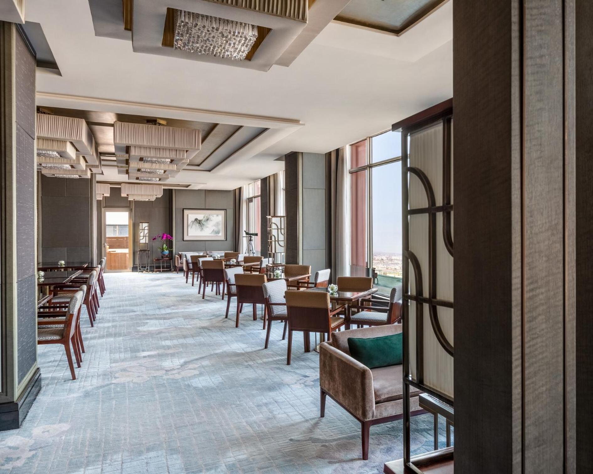 From buffet international dishes at Café Kong to authentic Cantonese and Shandong cuisine at Shang Palace, the hotel offers a diverse range of dining options to satisfy every palate. Guests can also unwind with beverages and coffee at the elegant lobby lounge, overlooking picturesque views of the river, hotel garden, or city skyline.
