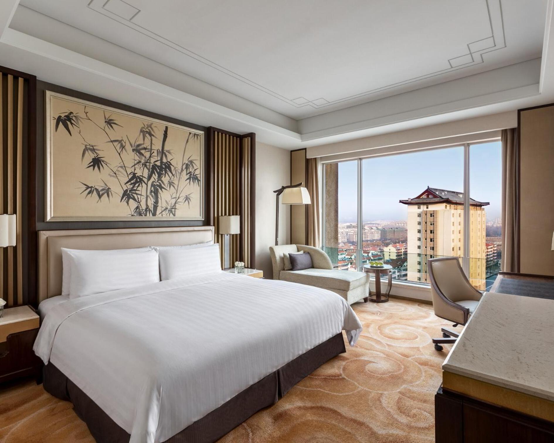 The Shangri-La Hotel, Qufu, offers a blend of classic decorations and modern amenities, providing guests with a comfortable and stylish stay. Each guestroom is tastefully decorated according to the Confucian philosophy of Six Arts, offering a unique and cultural experience.