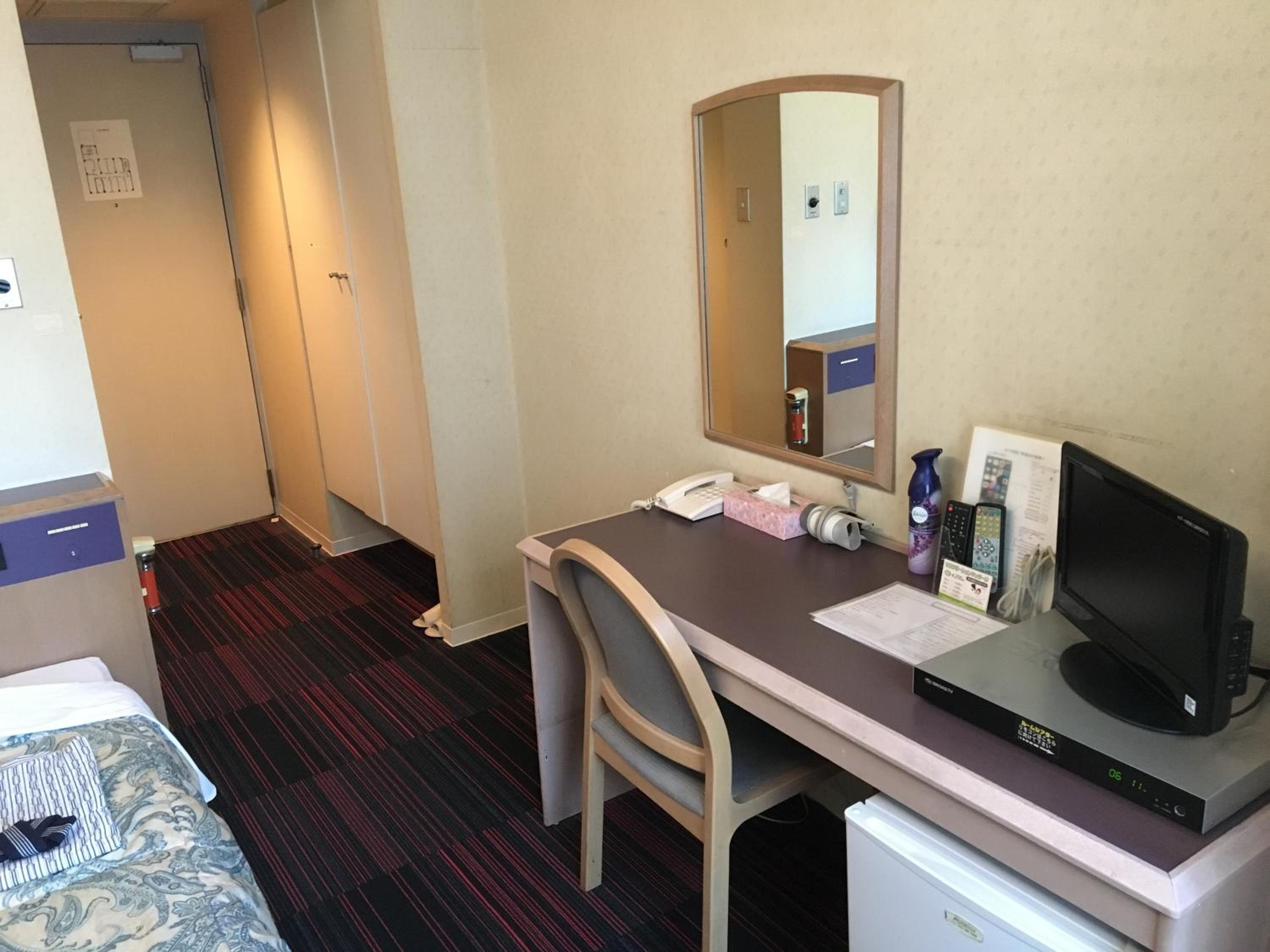 The hotel room was equipped with the standard, basic amenities of this kind of hotel.