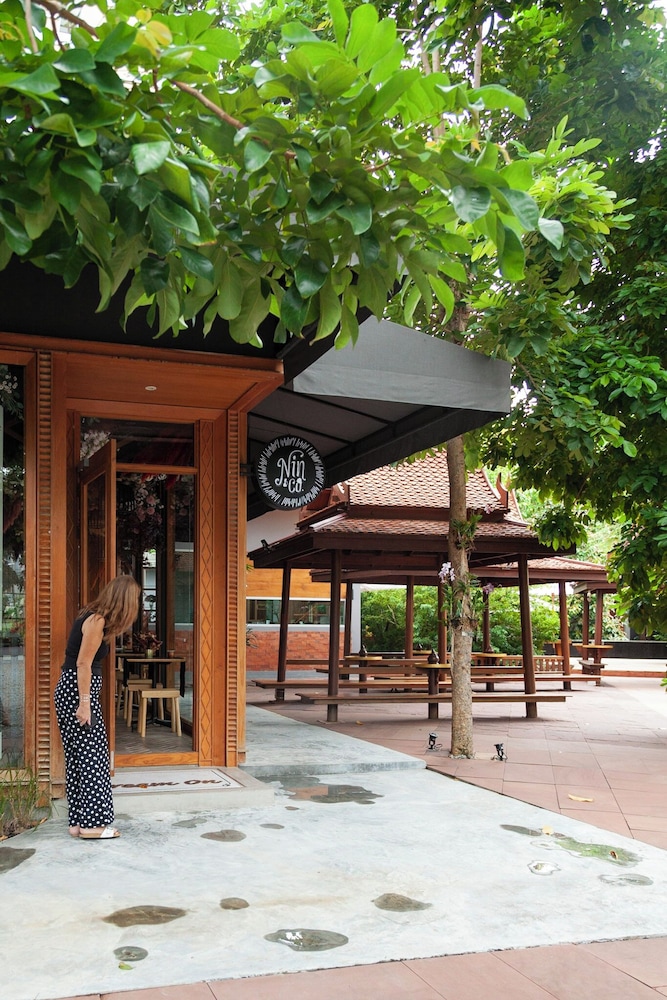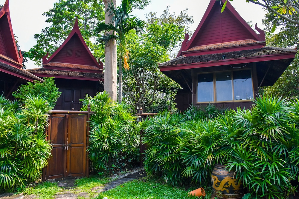 Vi har boet der før. Grunden til vi bor der igen er præcist følgende: 1) det er meget charmerende thaihytter af træ, 2) det ligger i en en vidunderlig have, 3) det er let at komme alle steder med tuk tuk og 4) der er nærmest ingen andre gæster.