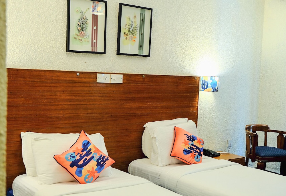The room I was given was only for a couple. Whereas I had paid for 3 (a couple n a teenager). The bathrooms were unhygienic n horrible. After much argument I was given a marginally better room with 2single beds. The service was pathetic. There was no running hot water. The food was yucky and the fish was stale. The location is good but the hotel is not well maintainedat all. It's a tacky n shifty place which is not meant for decent people.
