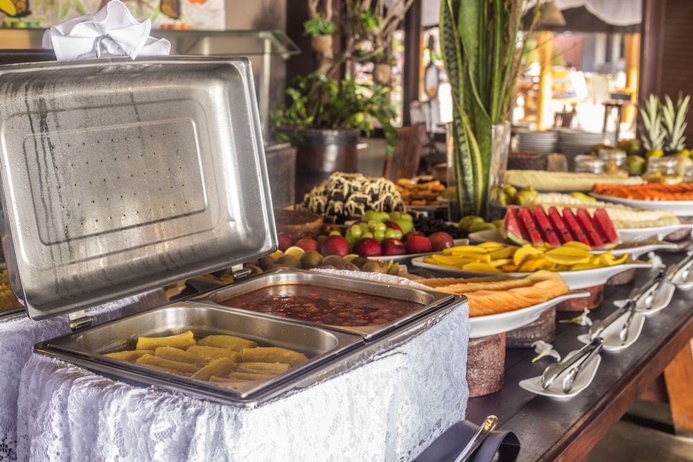 Savor delectable meals at our on-site restaurant and enjoy refreshing drinks at our bar or poolside. Start your day off right with a complimentary buffet breakfast, served daily.