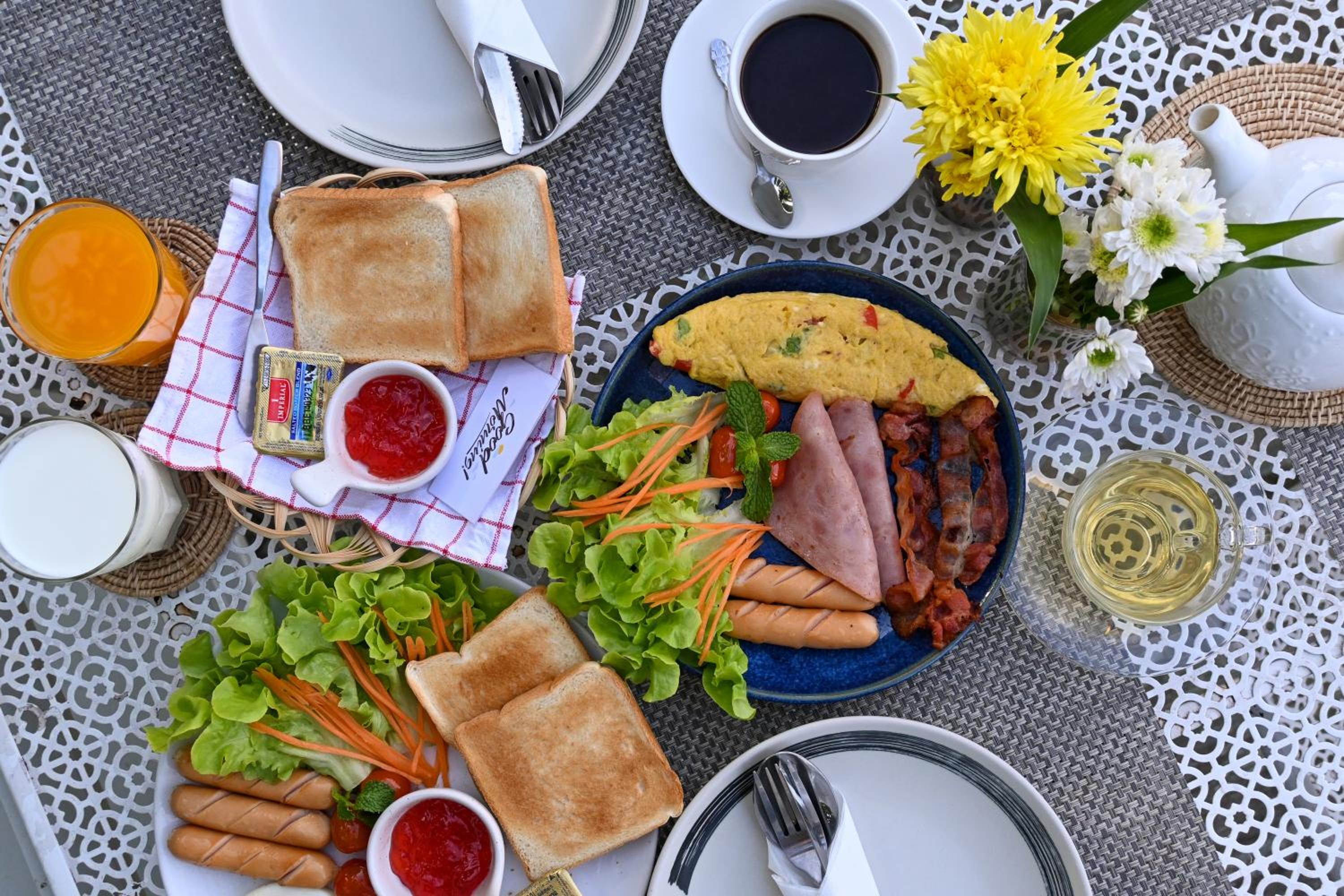 Aamiainen ok. Ystävällinen henkilökunta, lentokenttäkuljetus ja lähellä lentokenttää.
