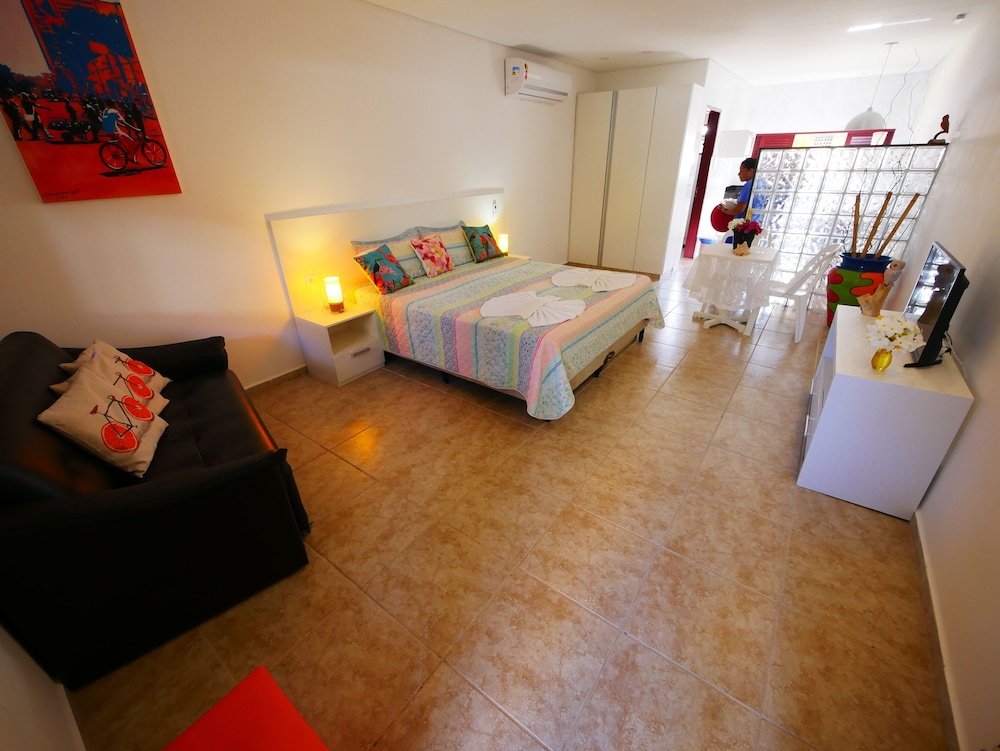 Nossa estadia foi muito boa, a pousada entrega o prometido. Boa localização, colada com o centro e com a praia, tudo a pé. Quarto grande, limpo, boa cama, cozinha com utensílios e funcionário simpático, nos ajudou no check in e no check out.